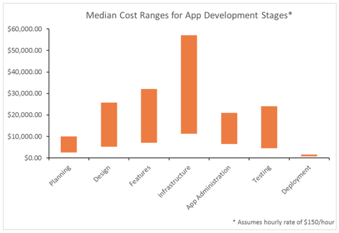 This plan should recognize that there are different stages for developing your app. You’ve got to plan and budget accordingly for each stage. In order to make sure you’ve got enough money to pay for each stage, you’ll need to consider where your funds are coming from. The last thing you want is to run out of money halfway through the project due to poor budgeting. Then you’ve got a partially developed app that’s worth nothing and no way to get your money back. If you own an existing business it may be easier for you to secure funding. You can use money from your company checking account to pay for this. You’ll also have more luck going to a bank for a loan and borrowing against the business to secure a line of credit. For those of you that are planning to develop a new app as a startup company, you’ll likely need to raise money from investors unless you’re independently wealthy. Jason Calacanis , a successful entrepreneur, and angel investor, recommends raising $ 750,000 to get started. Don’t get thrown off by that number. That’s not necessarily how much it will cost you to develop an app (although it might be). Jason factors in paying for a small team to work on the startup company and other fees associated with operating a business, in addition to paying for development. We’ll discuss the cost of paying employees shortly. I’ve come up with a guide that breaks down the factors impacting the cost of mobile app development into six major categories. I’ll go through each one of these factors and explain everything you need to know to get a better understanding of how much development will cost for your own unique situation. Overhead By definition , overhead consists of the indirect or fixed costs over running a business. As I said earlier, your app is a business, so you’ve got to treat it as such. I want to double back and finish the thought that we previously discussed regarding the payment of employees. If you have an existing company and infrastructure in place, you may not need to hire anyone else to help you with your app. You can work with your marketing team or IT department. However, if you’re starting a business from scratch and launching an app with it, you’ll probably need some help. The majority of startup companies have 5 employees or less. So take that into consideration if you’re planning to hire people to help you with this process. You’re going to have to pay these people. Nobody is going to come help you for free unless they have some sort of equity stake in the company. You’re also going to have to pay people to perform general maintenance on the app even after it launches. The cost will depend on how much time and effort you’re expecting this person or these people to put into it. Maintenance may very well be at least one full time position. In order to build a successful app, you’re going to constantly make changes and improvements along the way. Nobody’s app is perfect. Even the highest performing mobile apps in the world have bugs and glitches that need to be worked out. Your business won’t be immune to this. Marketing and promotional costs would also fall under the overhead category. What’s your company marketing budget for app promotion? This is an absolute necessity. Your app won’t get any downloads or make any money if nobody knows about it. For those of you that already have an existing business, the promotion will be a little bit easier. You’ve already got marketing channels set in place such as email, your website , and social media platforms. Using those methods will help keep marketing costs down, but it won’t be completely free. Promoting a brand new app from scratch without an existing business in place will be more expensive. Complexity How complex is your app? Your answer will impact the cost . This graphic displays how complexity can also impact the length of development in addition to the cost. I think the graph is a little bit modest as well. Some apps can even run up to a $ 1 million. So how do you know if your app is simple, moderate, or complex? Here are some basic differences. Simple mobile apps: Moderate mobile apps: Complex mobile apps: So take a look at the structure, features, and functionality of your app. See what category it falls into. If you’re just looking for something super basic with minimal features, you can get develop it at a low rate. But for those of you that have a more intricate design, the complexity is going to be more expensive. Server and data hosting location We briefly touched on this topic in the last section, but it’s worth going into a greater discussion about it. Your server and hosting plan will factor into the cost of development. As we just saw, any app that has a back-end server will be more expensive to host. Even if you want to develop an app without a server, it will still cost you at least $ 25,000 or so if you want it done properly by a professional. You can find self hosting services or an AWS or cloud hosting service for your app. Shop around to find the best price that different services have to offer. Just make sure you understand what you’re looking for. On one side of the spectrum, you don’t want to overpay for something that you don’t need. But you also don’t want to just go with the cheapest option. You get what you pay for. Don’t let your app suffer by selecting a server hosting plan that’s inadequate. Think about your company website as an example. Selecting the right hosting service ensures that your site runs smoothly without interruption. Same goes for your app. If your app is having problems, it’s not a viable way to keep users happy and make money. Operating system to develop on The operating system also factors into the price. There are pros and cons to both hybrid and native app development. Native apps focus more on the user experience. They work fast and are optimized for performance. You can also process lots of featur