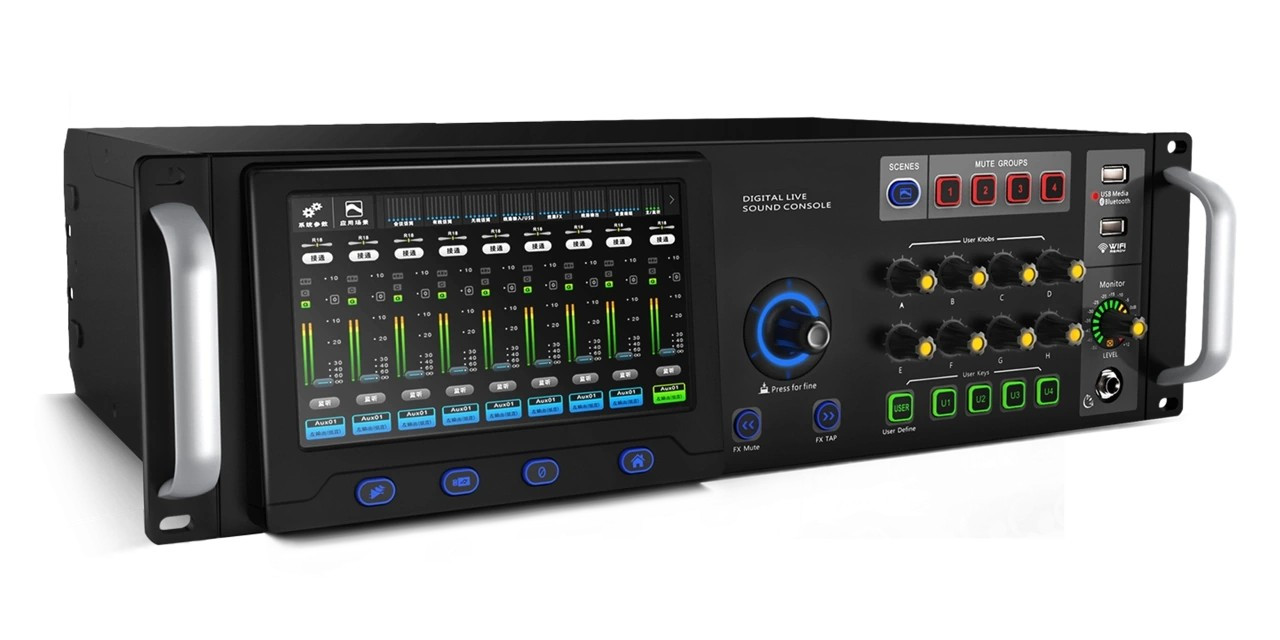 PAVRUS PA-MU22 рэковый цифровой микшерный пульт, являющийся аналогом Yamaha TF-Rack, оснащен цветным емкостным сенсорным экраном, пользовательский графический интерфейс в сочетании с аппаратным физическим управлением делает работу более интуитивной и быстрой. Рекомендуется использовать мастер, информационные инструкции и функции библиотеки пресетов, чтобы легко выполнить настройку канала, настройку усиления, выбор эффекта и т. д. Микшер может напрямую управлять системой проводных наушников-вкладышей (IEM), записывать и воспроизводить многодорожечные файлы в формате WAVE на все входные каналы и на выбранный пользователем стерео выход. Обеспечивает интерфейс WiFi, которым можно дистанционно управлять с мобильного терминала. Также PAVRUS предлагает цифровые настольные микшеры DM-серии от 8-ми до 32-х каналов (PA-DM8004, PA-DM1206, PA-DM1812, PA-DM2416 и PA-DM3216) работающие под управлением Linux и оснащенные сенсорным экраном, электрическими фейдерами, а каждый входной канал оснащен 4-х полосным параметрическим эквалайзером, лимитером, подавителем обратной связи, фильтром высоких и низких частот, компрессором и инвертором. PAVRUS цифровые настольные микшеры DM-серии хорошая альтернатива микшерным консолям Yamaha, Dynacord, Allen&Heath и других брендов. Каждый выходной канал имеет 8-ми полосный параметрический эквалайзер. Микшер можно подключить к опционально к точке доступа WIFI и к локальной сети. Прошивку ARM и DSP можно обновить через сеть или USB-накопитель. Микшер поддерживает 100 наборов предустановленных функций сцены, может экспортировать и импортировать на USB-накопитель для удобного резервного копирования данных. Старшая модель цифрового микшерного пульта PAVRUS PA-DM3216 обеспечивает полнофункциональное управление с помощью сенсорного экрана и по локальной сети iPad, синхронизация данных в реальном времени. PA-DM3216 поддерживает до 100 групп предустановленных функций сцены, которые можно экспортировать и импортировать в память USB для удобного резервного копирования данных. Микшер позволяет хранение 32 паттернов PEQ, есть встроенный генератор сигналов: синусоида, розовый шум, белый шум.