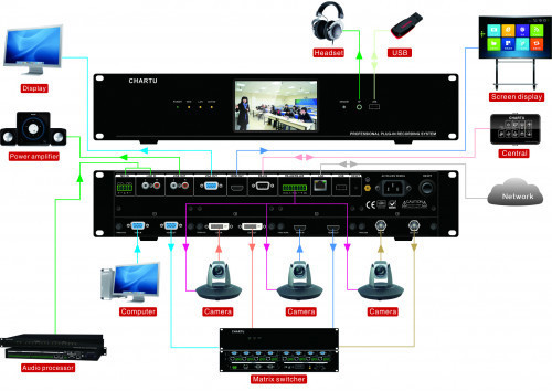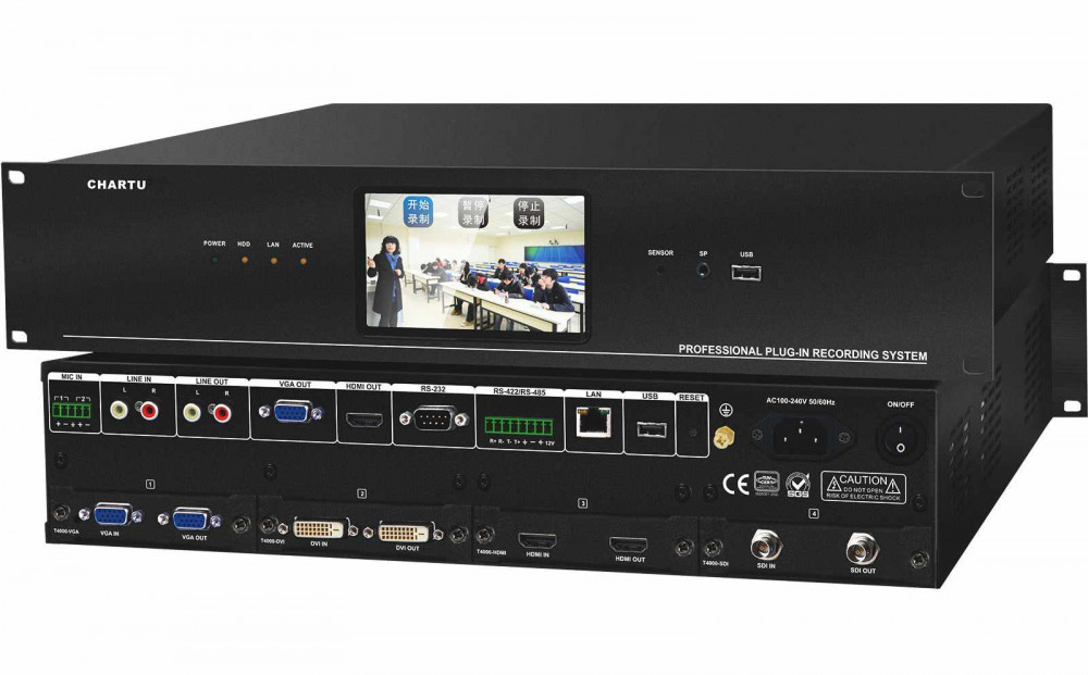 Передняя панель CHARTU CH-LB0404 оснащена 5″ полноцветным сенсорным дисплеем для управлением записями и позволяет наглядно отображать различную информацию и записанные задачи рекордера записи совещаний. CHARTU предоставляет функции управления рекордером через web-интерфейс и от компьютера подключенного к локальной сети с помощью программного обеспечения. Функциональные возможностиКаналов ввода HD 1080P 4 и каналов вывода HD 1080P 4 Недавно ассортимент видеооборудования пополнился видео рекордерами PAVRUS PV-VH3000 на 4 HDMI и 4 SDI, PV-VH5000 на 5 HDMI и PV-VH8000 на HDMI, 4 SDI, 1 VGA для захвата видео, но все устройства оснащены портом RJ-45 для управления и просмотра потокового видео сигнала.