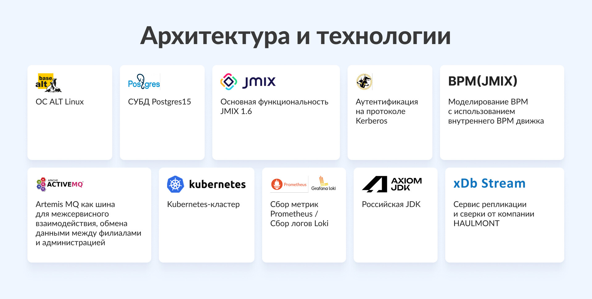 Далее пройдем по этому списку и расскажем, что используют заказчики Хоулмонт. У нас речь идет о проектах в различных отраслях — архив в банке на базе микросервисов, ERP для крупной транспортной компании в сфере ЖД-перевозок, информационная система для страховой компании и т. д.