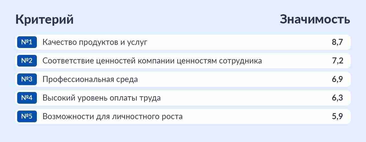 Одно из самых репрезентативных в России исследований точки зрения сотрудников — ежегодный обзор Хабра и консалтинговой компании ЭКОПСИ, представленный в конце 2025 года. Он показывает, как специалисты оценивают бренды работодателей и какие качества для них самые важные при поиске работы.
