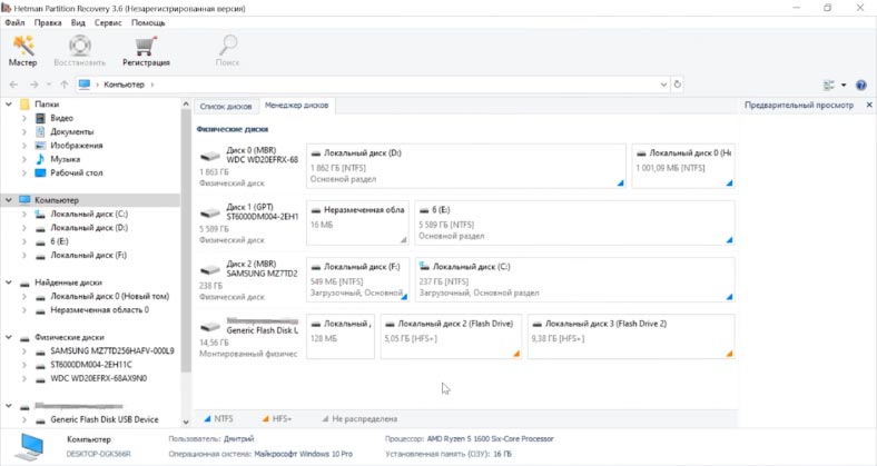 Для нормального использования носителя, его для начала нужно разметить, чтобы ОС могла понять в которые именно области можно записывать информацию. Поскольку накопители имеют большой объём их обычно разбивают на несколько логических разделов, каждому из которых присваивается своя буква. После разметки диска на него записывается таблица разделов, которая помогает операционной системе его распознать. Если она каким-либо образом будет повреждена или потеряна, это приведет к потере раздела. После чего вы не сможете записывать и читать данные с него. Существует несколько структур разбиения диска — MBR, которая применялась еще чуть ли не с момента появления жестких дисков, и современная система — GPT. Некоторые ОС используют свою структуру, к примеру, в MacOs можно использовать таблицу APM (Карта разделов Apple). Поэтому, если взять накопитель с таблицей разделов одной ОС и подсоединить к ПК с другой то информация скорей всего будет недоступной. Чтобы прочитать информацию вам понадобится сторонний софт. Partition Recovery™ 3.7Инструмент восстанавливает файлы с любых устройств, независимо от причины потери данных.Скачать Hetman Partition Recovery без труда справится с подобной задачей. Программа автоматически определит файловую систему логического тома, проведет сканирование и вы сможете просмотреть содержимое диска и сохранить нужные файлы на другой носитель. Также изменение схемы разделов без переформатирования диска невозможно. В такой ситуации вся информация конечно же будет утеряна, восстановить ее становится гораздо сложнее но все еще возможно. Существует довольно много разных файловых систем, они отличаются друг от друга внутренней структурой. Есть универсальные файловые системы, большинство ОС распознают их без проблем. А также существуют уникальные файловые системы, разработанные под определенные ОС. К примеру, если отформатировать накопитель с файловой системой Ext4 в Linux записать на него данные, а затем подключить к ПК c Windows, он не распознает диск, и предложит его инициализировать, в результате чего информация будет утеряна. Если вы случайно согласились на инициализацию, при подключении диска назад к ОС Linux вы ничего на нем не увидите накопитель будет пустой. Открыв такой накопитель с помощью Partition Recovery и проанализировав, вы сможете достать из него найденную информацию. Нельзя исключать и человеческий фактор. Каждому свойственно ошибаться и в некоторой степени эти ошибки неизбежны. После загрузки операционная система вывела сообщение об необходимости отформатировать раздел для возможности дальнейшего использования. Вы согласились, после форматирования вся информация на диске оказалась стерта. То есть, при управлении жестким диском можно по ошибке удалить раздел, использовать команду diskpart чтобы очистить «не тот» носитель, или выполнить другие операции, которые могут привести к подобным проблемам. В этой ситуации без специальной утилиты восстановить данные невозможно. После загрузки операционная система вывела сообщение об необходимости отформатировать раздел для возможности дальнейшего использования. Вы согласились, после форматирования вся информация на диске оказалась стерта. То есть, при управлении жестким диском можно по ошибке удалить раздел, использовать команду diskpart чтобы очистить «не тот» носитель, или выполнить др