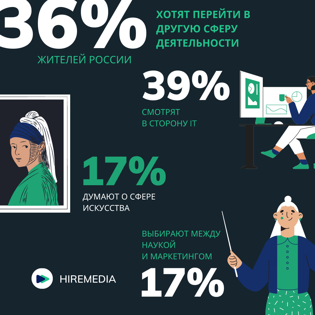 Куда пойдут тоже ясно. Большинство — 64% — хотят найти работу в той же сфере. А вот 36% думают о том, что специфику работы стоит менять. Чаще всего они смотрят в сторону IT — 39% опрошенных, сферы искусства — 17%, науки, образования и маркетинга — 15%. Интересно, но при повсеместном увлечении ЗОЖ. всего 4% россиян готовы искать работу в спортивной сфере. Все ответы были собраны в феврале-марте 2023 года среди 2326 россиян. Не всегда довольных, но официально трудоустроенных.