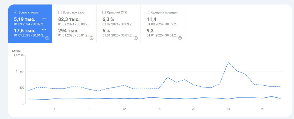 В итоге поисковый трафик вырос в 3,4 раза с 5 190 посетителей до 17 600