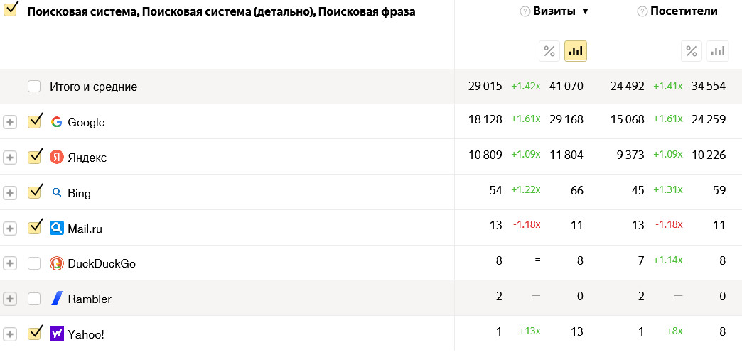 трафик вырос на 42% за последние 2 месяца. В Google динамика роста