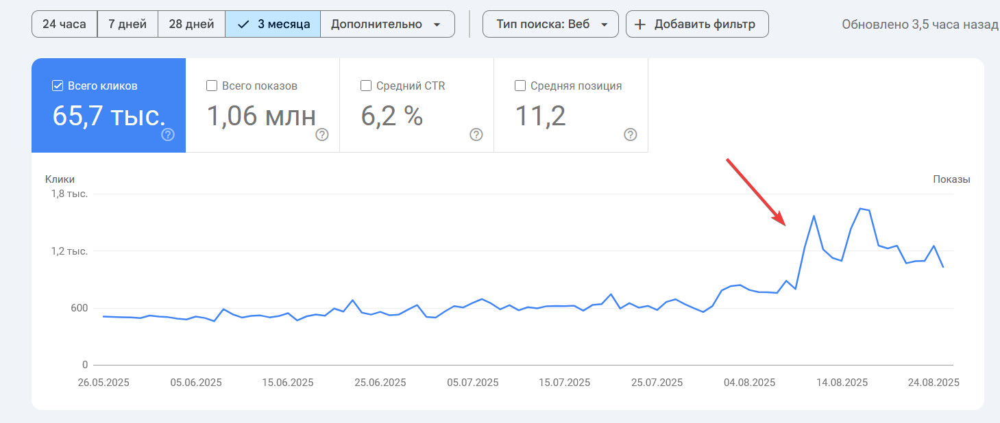 Эта работа помогла привлечь дополнительный трафик из разных регионов, улучшив структуру сайта и внутреннюю перелинковку.