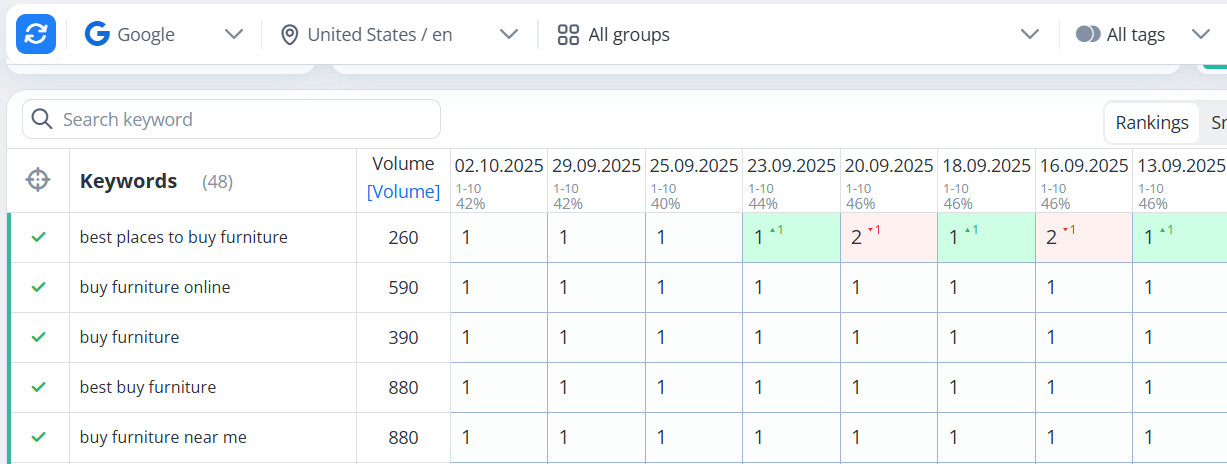 Кейс по продвижению мебельного сайта в США и получения ТОП1
