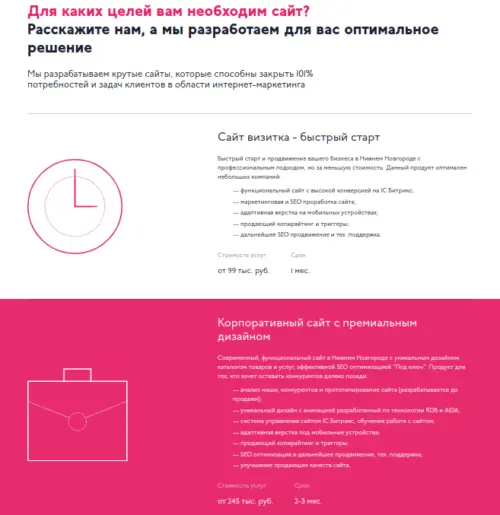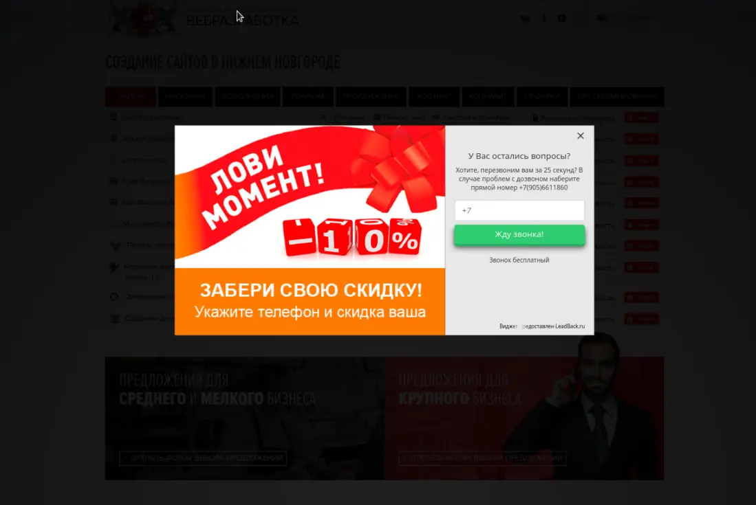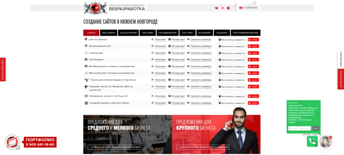 Интересный пример студии веб-дизайна, который всеми силами склоняет вас к покупке. Отличный вариант для тех, кто как раз искал профессионалов в агрессивном маркетинге. Хотя основной макет выглядит неплохо, его исполнение вызывает подозрения и настораживает.