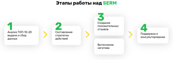 А если вы уже имеете опыт в работе над имиджем — вам могут потребоваться: вытеснение негатива и размещение новых отзывов.
