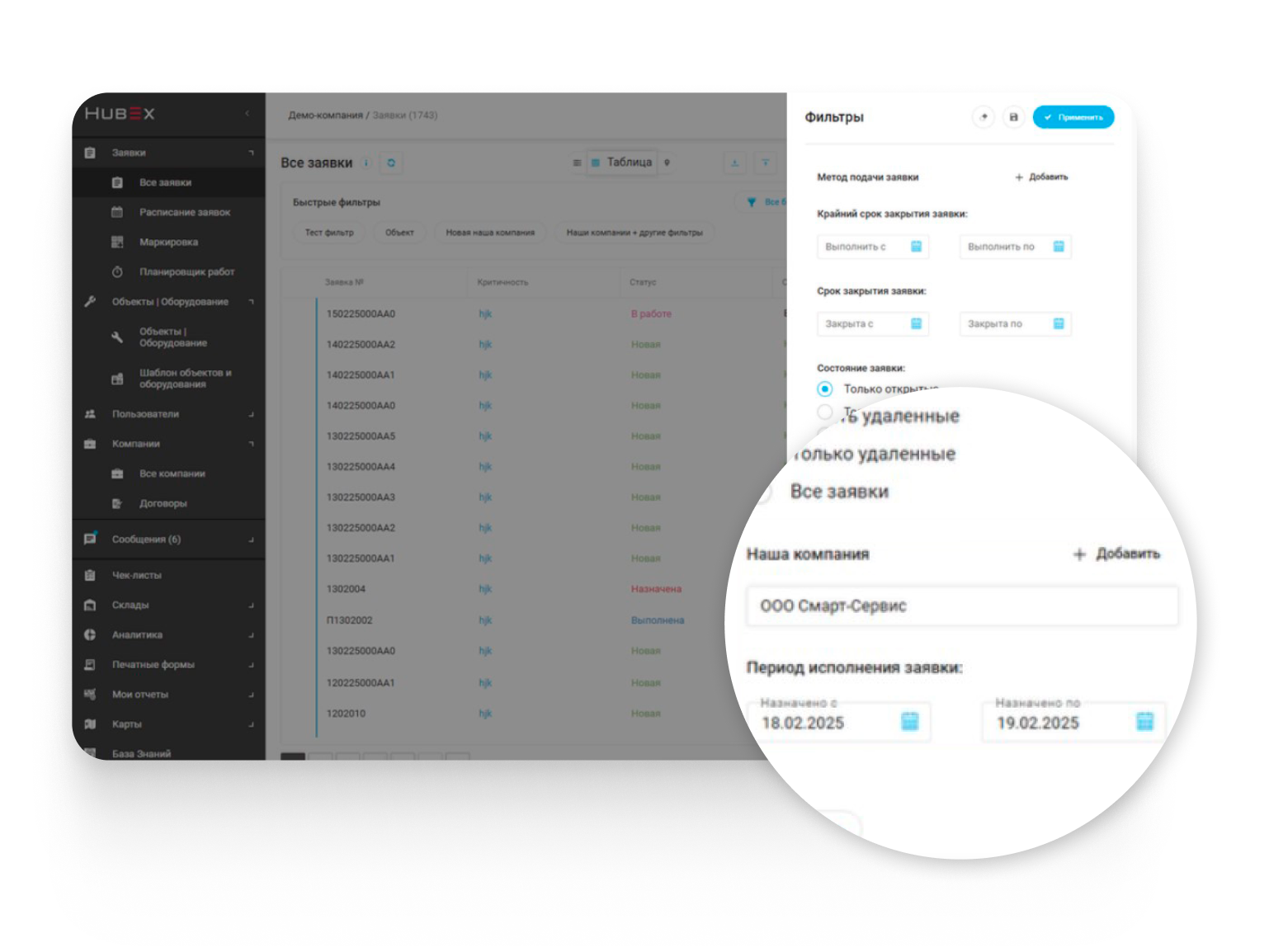 - Наша компания — фильтр заявок по компании-исполнителю (если в системе несколько юридических лиц).