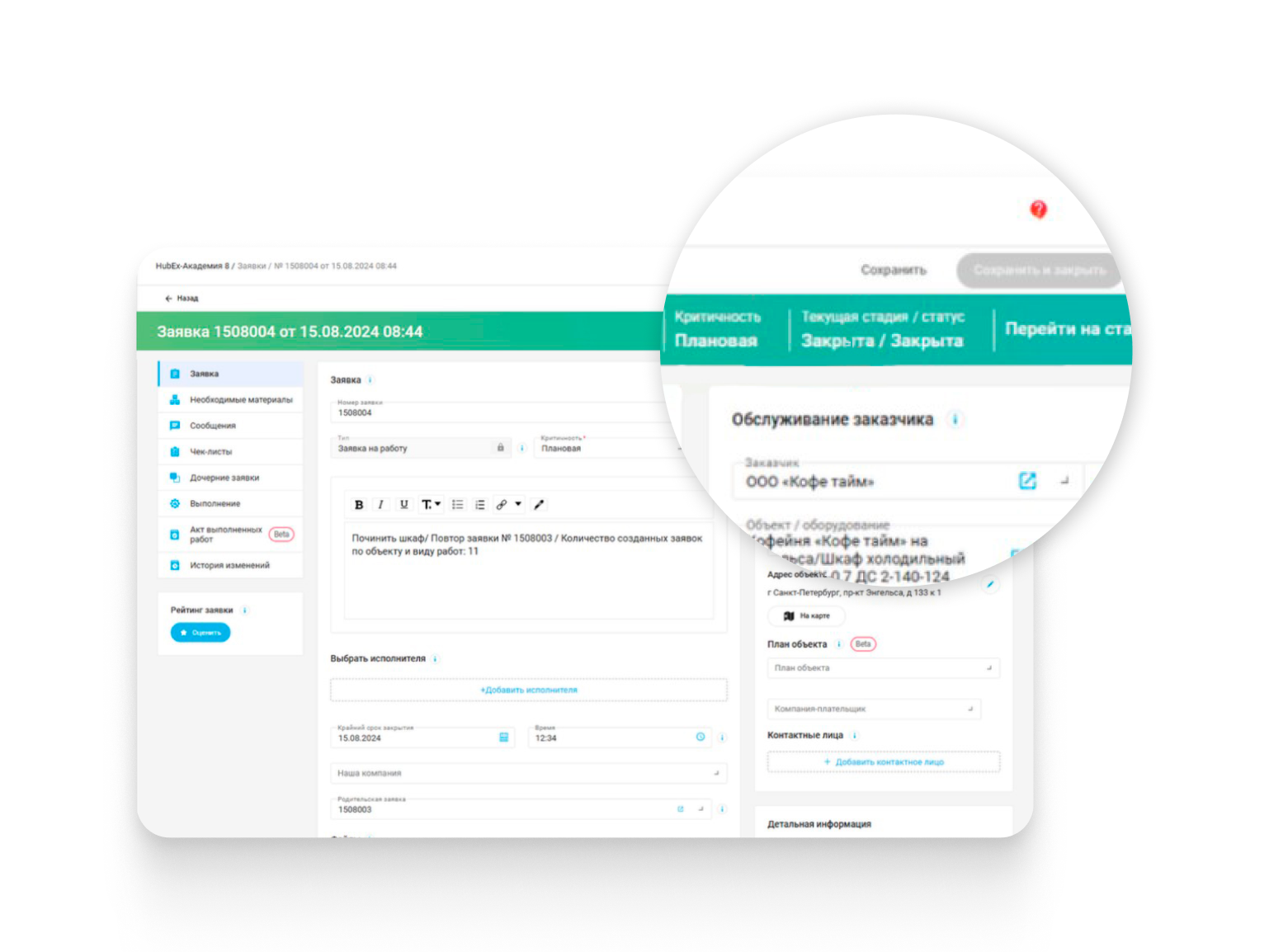 Теперь можно увидеть время, когда сотрудник перевел заявку в мобильном приложении на другую стадию, находясь в офлайн режиме.В старом представлении истории изменений отображается как время перехода в офлайн режиме, так и фактическое время перехода на другую стадию. Мы расширили поле описания заявки и изменили вид меню редактирования текста. Теперь в окне описания отображается в два раза больше строк без прокрутки внутри данного поля. Также в описании заявки обновили стиль кнопок для редактирования.При открытии заявки в боковом окне появилась возможность редактировать и добавлять описание с разметкой (выделение жирным, курсивом, списки и пр.). Ранее изменение или добавление описания было недоступно в боковой панели редактирования заявки. Добавили в ролях новое полномочие «Редактирование закрытых заявок». При наличии такого полномочия пользователь сможет заходить в уже закрытые заявки и менять поля при необходимости.Системный администратор (владелец) сможет переводить заявку на стадии назад. Заявка все так же будет считаться «Закрытой», но при наличии полномочия пользователи смогут двигать по стадиям. Теперь есть возможность добавлять не только фото и видео в мобильном приложении, но и другие документы. При прикреплении файла появился новый пункт "Выбрать файл".При нажатии пользователь проваливается в документы, хранящиеся на телефоне, где может выбрать .doc, .pdf и любой другой файл и прикрепить его к заявке или объекту. Добавили в HubEx возможность создавать компанию-плательщика прямо из заявки аналогично созданию компании-заказчика. Теперь клиенты смогут как создавать компанию-плательщик, так и редактировать существующую из заявки. Подписывайтесь на Телеграм-канал, чтобы следить за важными обновлениями системы и анонсами мероприятий HubEx.