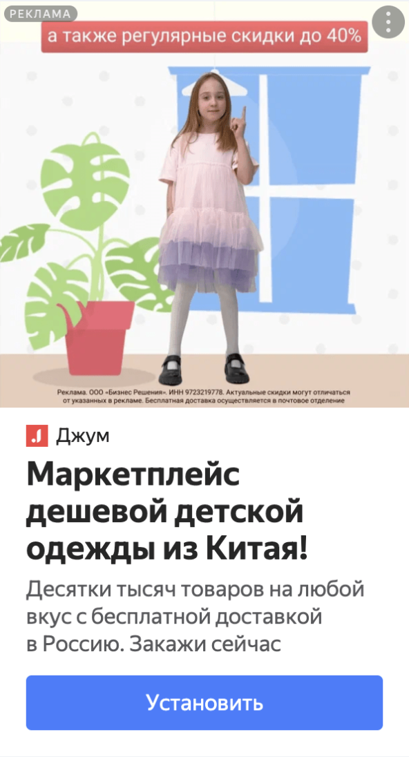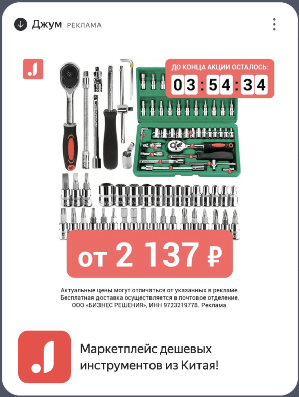 На Джум представлен широкий ассортимент товаров: от детских игрушек до смартфонов. Рекламные кампании обучаются на стабильном потоке данных о покупках и конверсиях. Поэтому для рекламы лучше всего подходят товары, на которые есть постоянный спрос.