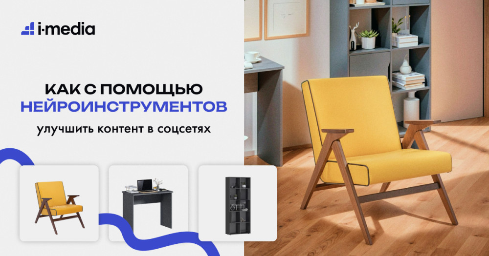 Первый опыт работы с ИИ связан с последней проблемой. Мы получили изображение, но соотношение сторон не подходило. Товар клиента при встраивании в рамку обрезался еще сильнее, чем было в оригинале, и использовать изображение в таком виде мы не могли. Так мы впервые пробовали инструмент Uncrop от clipdrop.co. Он помогает редактировать соотношение сторон, расширяет границы изображений и достраивает недостающий фон. Инструмент был бесплатным, поэтому нам ничего не стоил эксперимент с ИИ. Тогда на создание подходящего нам изображения ушло чуть больше времени, так как Uncrop еще обучался и для нас это был первый опыт. Теперь инструментом мы пользуемся чаще, а результаты стали чище. Продолжили эксперименты с нейросетями и нашли инструмент Object remover. Он качественно и моментально удаляет объекты с фото. Теперь визуальный шум — не причина отказаться от публикации. С помощью инструмента можно убрать бирки с ценой и тейбл-тенты с фотографии из магазина и создать для клиента красивую продающую картинку. Проблему с плохим качеством изображения помог решить нейроинструмент Upscale. Благодаря нему мы можем поделиться практически любой реальной фотографией мебели. Теперь ни один день работы с визуалом не обходится без Upscale. С помощью этих нейроинструментов получили такие результаты: Спустя год работы с перечисленными инструментами, можем уверенно рекомендовать их тем, кто редактирует и создает визуальный контент. Их можно использовать для улучшения изображений. Например, для картинок, прошедших через сжатие при загрузке на сайт или полученных в мессенджере. На выходе вы получили качественное изображение без визуального шума и артефактов сжатия быстро и бесплатно. В контент-плане «Столплит» есть регулярные рубрики, одна из таких — подборка мебели по цветам, где собираем товары в едином цвете. Для баннеров используем изображения мебели в интерьере. На создание таких подборок мы можем потратить до трех часов чистого времени. Для таких постов нельзя взять первую попавшуюся мебель среди 250 000 товаров на сайте. Нужно найти изображения с множеством ограничений: по цвету, бренду, принадлежности и другим параметрам. Одна из главных сложностей связана с тем, что большая часть подходящей для рубрики мебели не имела в карточке товара интерьерных изображений; в основном это была мебель на белом фоне. Вторая популярная рубрика — подборка мебели для создания заданного интерьера, например, мебель для балкона, на коллаже. Работа над баннером в этом случае тоже могла занимать до трех часов чистого времени. Мы тратили время на поиск товаров, а после старались разместить мебель на баннере так, чтобы получилась гармоничная картинка. Добавляли декор, тени и соответствующее окружение вроде окна, ковра, светильника. Задались целью оптимизировать работу над такими постами с помощью нейросетей. С новым нейроинструментом задача решается за 30 минут и меньше. AI product photos позволяет реалистично вписать товар на сгенерированный фон. С его помощью мы больше: Были загружены в документ: Вот такой результат получили: Этих нейроинструментов стало не хватать, когда дело доходило до фотографий дизайн-проектов «Столплит» (собранная мебель по проекту с дизайнером в интерьере покупателя). Самая распространенная проблема таких фотографий в том, что они выглядят незавершенными, так как 