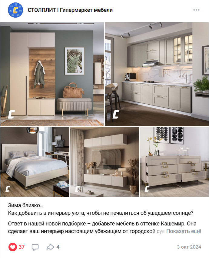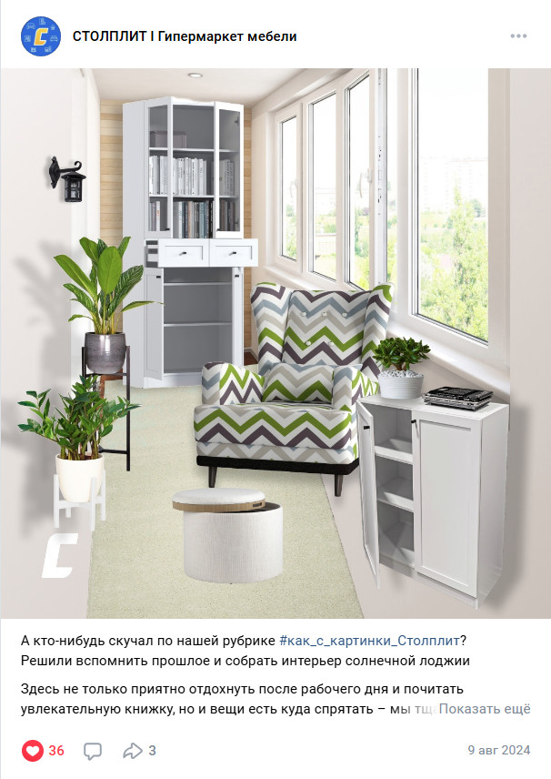 «Столплит» — крупный гипермаркет мебели и готовых интерьерных решений. i-Media развивает соцсети клиента с 2022 года.
