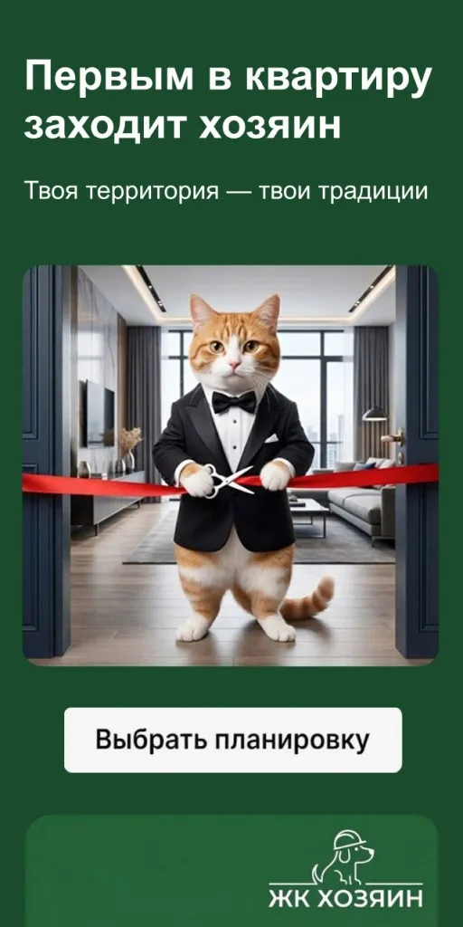 2. Ассоциация с комфортной средой. Для многих людей питомцы — неотъемлемая часть дома и уюта, центр домашнего очага. Поэтому мы транслировали идею, что новый ЖК — это не просто квадратные метры, а пространство, где комфортно каждому члену семьи, включая четвероногих.