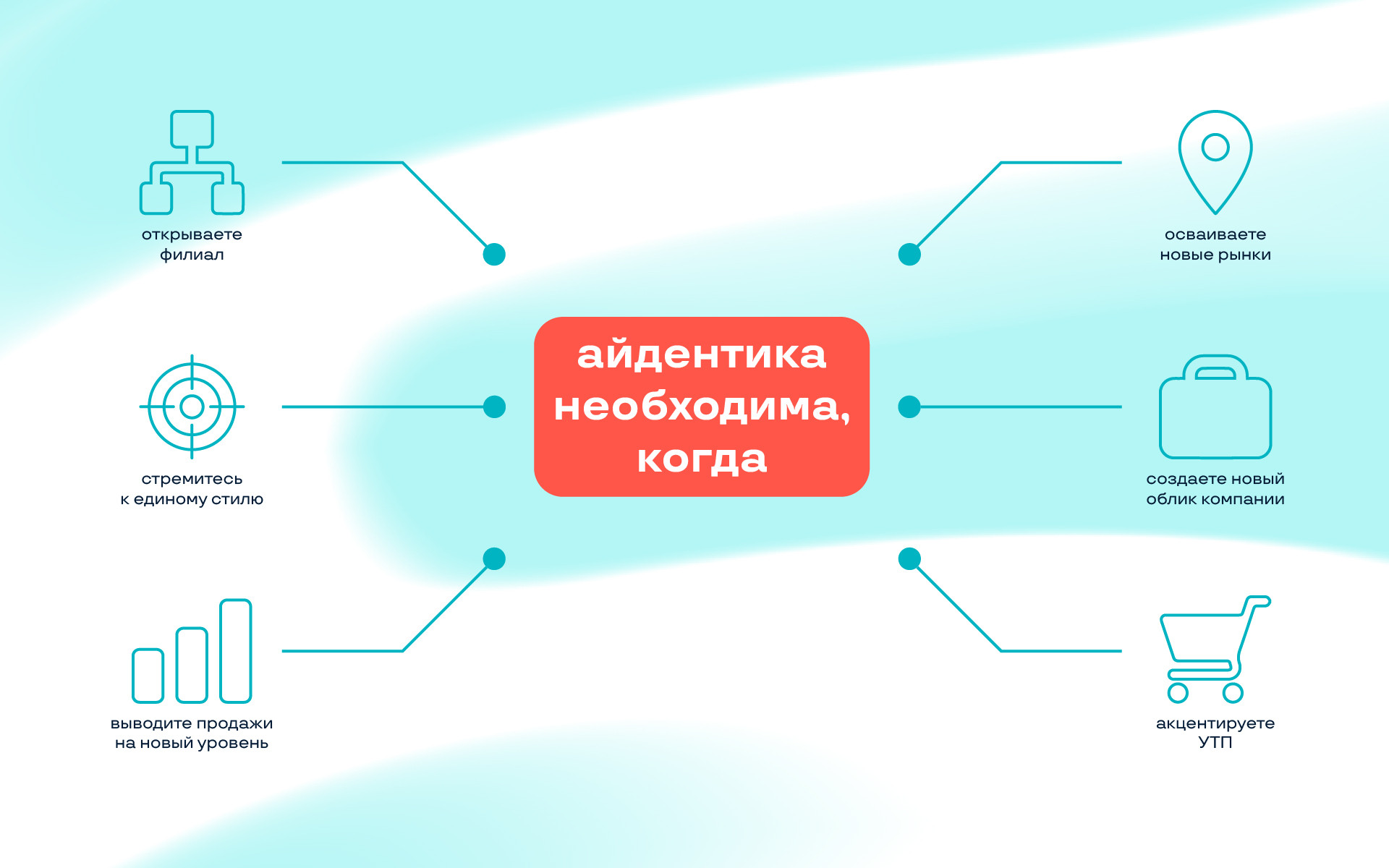 Основная цель айдентики бренда — сделать образ компании узнаваемым посредством различных носителей: значок на машине, визитка директора, дизайн лендинга. Бонусом айдентика помогает не перепутать оригинальный товар с подделкой: