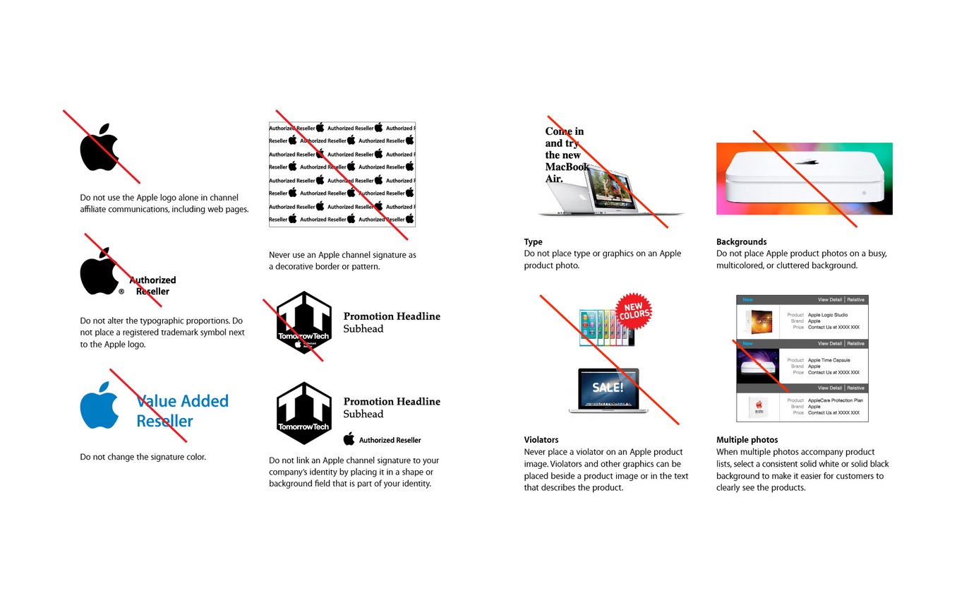 У компании Apple брендбук отражает её философию инноваций и стремление к совершенству в дизайне, через то, что в нём содержатся строгие правила использования логотипа, шрифтов, цветовой палитры и изображений. Apple уделяет внимание каждой детали, чтобы создать образ бренда, который будет узнаваем даже через 20 лет.
