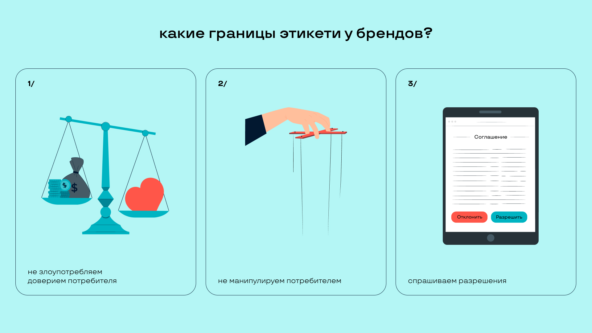 Подбираем цвета, подходящие образу компании и формирующие положительные ассоциации с брендом. При разработке визуальной системы мы используем несколько цветов, формируя палитру бренда. В проекте по созданию айдентики для агентства недвижимости ЭВО мы продумали сочетание комплементарных цветов: синего и оранжевого. Цветовое решение своей контрастностью привлекает внимание аудитории и усиливает метафору айдентики: тесное взаимодействие клиента и риэлтора ради успешной сделки. Как цвет приобрел название компании? Ювелирная компания Tiffany&Co успешно внедрили фирменный бирюзовый оттенок в свою коммуникацию, что теперь этот цвет носит название самого бренда: «цвет тиффани». Истории позволяют погрузить потребителя в идеологию бренда, формируя с ним эмоциональную связь и укрепляя его лояльность. Что такое сторителлинг? Это формат оформления информации с помощью увлекательного и динамичного повествования, отражающего ценности и миссию компании. Потребитель становится частью истории, что формирует связь между ним и брендом. Как создать историю? Сторителлинг прослеживается во всех каналах взаимодействия с аудиторией, чтобы создать консистентный образ бренда. Российский бренд — Surf Coffee отличается от традиционных кофеен своей уникальной концепцией, не похожей на конкурентов. Главная тематика заведения — Гавайи и серфинг. От яркой тропической айдентики до интерьера заведения: каждая деталь рассказывает клиентам историю бренда, погружая и делая его центральным героем, настоящим серфером. Сторителлинг — это энергообмен между брендом и потребителями, который охватывает всю аудиторию, формируя с ней эмоциональную связь. Авторитет: влияние на выбор потребителя У каждого человека есть авторитет — наставник и учитель, к которому мы прислушиваемся. Бренды становятся частью нашей жизни, и аудитория видит в них авторитеты в разных вопросах. Например, на модные дома такие как Шанель или Баленсиага равняется весь массмаркет и разрабатывает коллекции, ориентируясь на показы этих брендов. Они диктуют моду, потому что занимают позицию авторитета в этой сфере. Что такое авторитет в психологии? Авторитет — это признанное влияние, основанное на компетентности, лидерских качествах, эмпатии, целеустремленности и честности. Он формируется в конкретной области и опирается не на формальные полномочия, а на доверие и уважение. Авторитет имеет долгосрочное действие, поэтому формируется комплексно и длительное время с помощью разных инструментов. 1. Строим доверительную и прозрачную коммуникацию: 2. Укрепляем экспертизу: 3. Продумываем стратегию продвижения: Сочетание различных коммуникационных стратегий укрепляет авторитет компании в глазах целевой аудитории. Так, Apple успешно культивирует имидж инновационности и технологического превосходства во всех своих коммуникациях: от фирменного стиля до рекламных кампаний. В формировании бренда ключевую роль сыграла личность Стива Джобса — его образ тесно связан с продукцией Apple, оказавшей революционное влияние на индустрию. Ежегодные презентации новых продуктов Apple вызывают интерес и активные обсуждения в сети как до, так и после события. Этот целенаправленно создаваемый компанией онлайн-ажиотаж оказывает мощное психологическое воздействие на потребителей. Сочетание различных коммуни