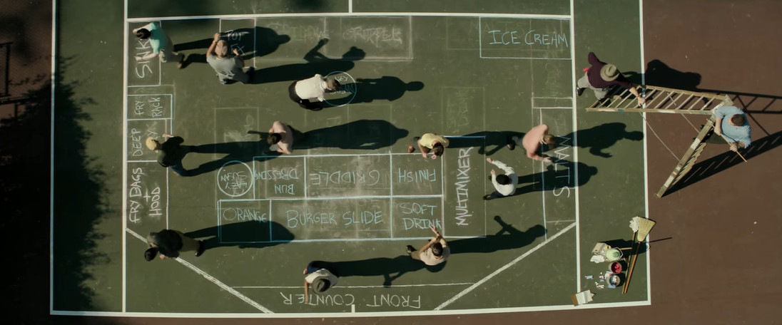 идеальной кухни рисовали мелом прямо на асфальте, а работники делали вид, что собирают на ней бургеры и жарят картошку. Выглядело всё это примерно так: Таким способом братья Макдоналд тестировали разные виды кухонь, миксовали и перестраивали зоны, всё стирали и рисовали заново, пока не добились идеальной оптимизации. Так получился прототип кухни-конвейера со скоростным обслуживанием. Каждый работник на ней выполняет всего 2-3 движения, но максимально чётко и быстро. Например, человек у гриля только переворачивает котлеты в нужный момент, кладёт их