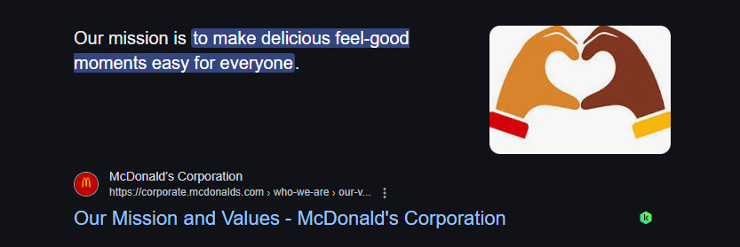 сейчас, но по факту они проделали путь, который как раз и описан в нашей методологии. А вы знали, как звучит миссия Макдоналдса? Если нет, показываю. Вот она: «To