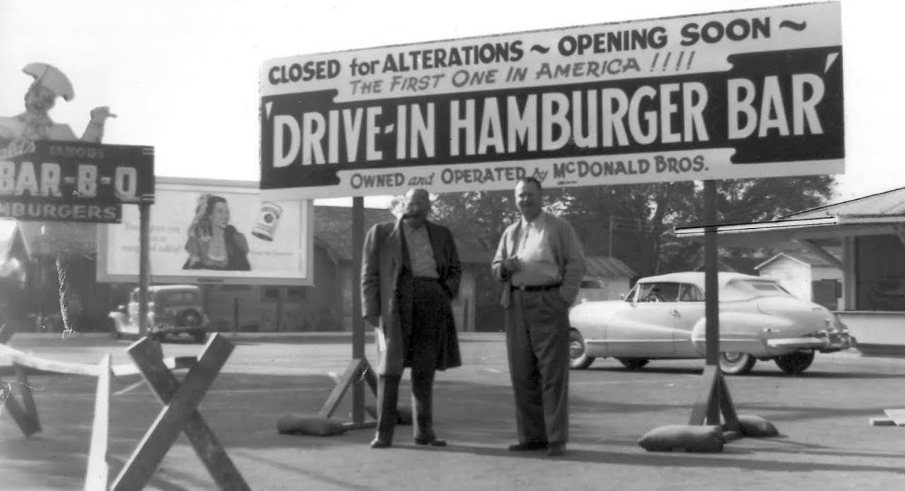 очередей и вечно занятой парковки, но можно и оптимизировать — например, сделать функцию заказа прямо из авто. Открытие первого McDrive и братья Макдоналдс на фоне вывески: Те, кто внимательно читал, спросят: почему это не ТРИЗ, здесь же про оптимизацию? Дело в том, что в ТРИЗ важен идеальный результат, а система