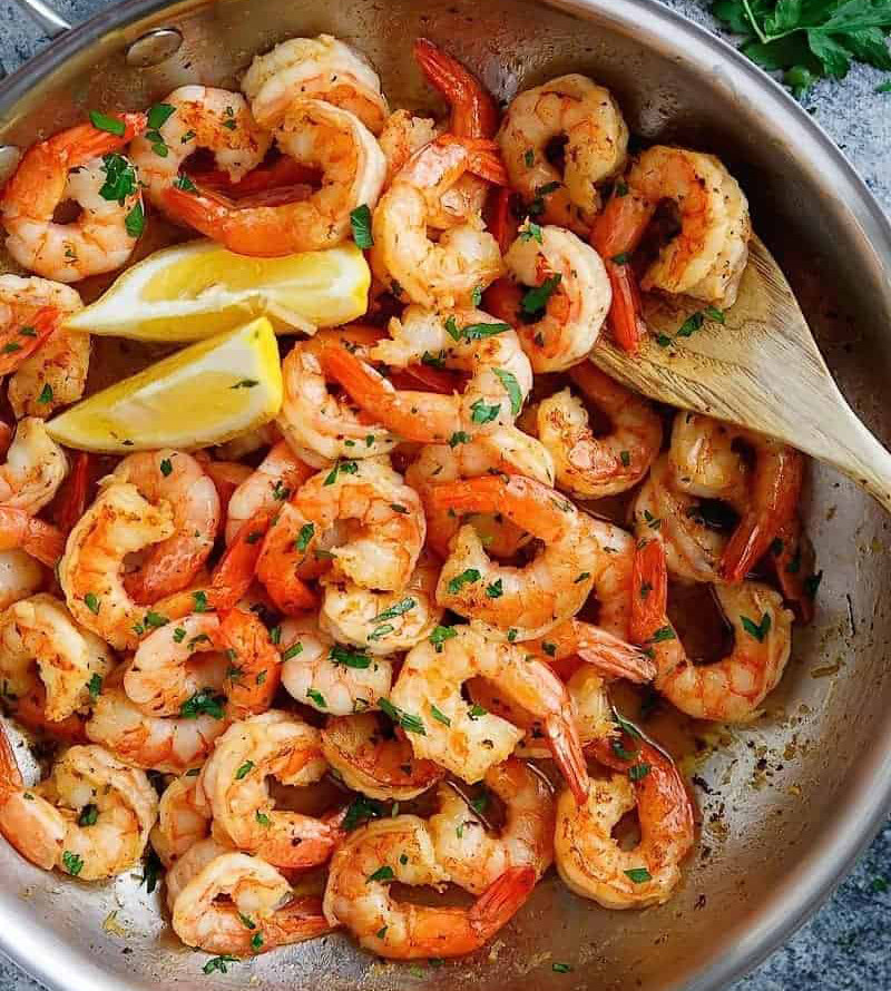 Креветки с чесноком и лимоном — это легкая еда, которая может быть подана к пиву, либо просто на закуску.