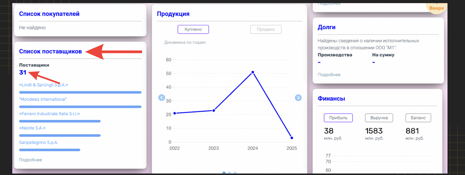 Дистрибьюторы, в отличие от большинства производителей, гораздо лояльнее относятся к небольшим компаниям и интернет-магазинам. Они готовы обсуждать и отгружать товар минимальными партиями — порой буквально от пары-тройки единиц, что идеально подходит для тестирования ниши или работы без крупного склада. Резюмирую: Прямая работа с производителем сулит максимальную выгоду по цене и потенциальный контроль качества, но требует готовности к серьезным обязательствам и большим вложениям в закупку. Дистрибьюторы же предлагают более легкий вход и гибкие условия. Цена выше, но процесс сотрудничества зачастую проще и доступнее для стартапов и небольших игроков. Итак, с тем, кто вам нужен, разобрались. Теперь переходим к самому, пожалуй, главному вопросу: где же этих потенциальных партнеров вообще искать? Сразу предупреждаю: дальше будет много конкретных инструментов и полезных ссылок. Поисковые системы (Google, Яндекс) — самый очевидный старт Наверняка каждый из нас сталкивался с ситуацией, когда на вопрос «Как сделать это?» или «Где найти то?» в ответ слышишь «Загугли». Поиск поставщиков не исключение, и это действительно первое, что приходит в голову. Метод предельно прост: открываете поисковик и вбиваете запрос типа «[название товара] оптом». Например, «ноутбуки оптом» или «пряжа оптом». А дальше... да, придется терпеливо пролистывать страницу за страницей, изучая сайты, пока не наткнетесь на что-то, что покажется вам «тем самым». Кстати, иногда может сработать поиск по изображению товара. Если у вас есть фото нужного продукта, попробуйте загрузить его в поисковик — иногда это может вывести на сайт дилера или производителя. Честно признаюсь, в моей практике поиск только через общую выдачу поисковиков редко приводил к по-настоящему прорывным результатам. Да, для первичной разведки, чтобы понять, кто вообще на рынке есть и каков примерный уровень цен («средняя температура по больнице»), этот метод годится. Но если цель — найти лучшие условия и надежных партнеров, то есть куда более эффективные способы «постучать в нужную дверь». Вот мы и подошли к инструментам, ради которых, собственно, и писалась эта статья. Речь идет о профессиональных онлайн-платформах. Это мощные облачные сервисы, которые аккумулируют огромные объемы информации о юридических лицах и ИП из самых разных открытых источников: официальных госреестров, баз данных вакансий, тендерных площадок, сайтов самих компаний и многого другого. Здесь, конечно, буду говорить о сервисе «Импульс» (impulsee.ru), поскольку именно его функционал для поиска поставщиков мы заточили особенно сильно и, на мой взгляд, он дает серьезную фору многим аналогам в этой конкретной задаче. Это не просто «наше болото», которое мы хвалим, а инструмент, созданный с учетом реальных болей бизнеса в поиске партнеров. Приведу пару показательных примеров сценариев использования: Можете зайти и протестировать прямо сейчас — первый месяц пользования сервисом предоставляется бесплатно. Конечно, есть и другие сервисы с похожими возможностями для анализа компаний, например, Контур.Компас или РусПрофайл. Существует большое количество онлайн-площадок, которые работают как агрегаторы. У каждой есть свои особенности, но общая цель одна: собрать в одном месте информацию о поставщиках, позволяя искать их по типу товар