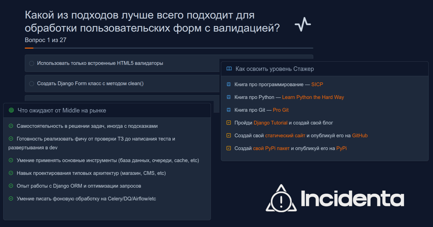 Опросник можно пройти по ссылке: https://app.incidenta.tech/quiz/django-qualification/