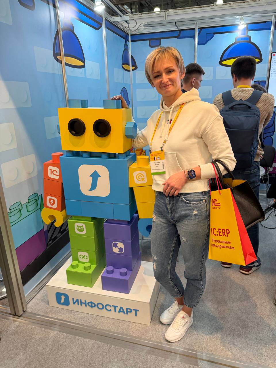 Особое внимание гостей привлек фирменный робот Инфостарт, символизирующий взаимодействие направлений компании и подход к автоматизации. Робот встречал посетителей, участвовал в демонстрациях и стал главным героем фотозоны.