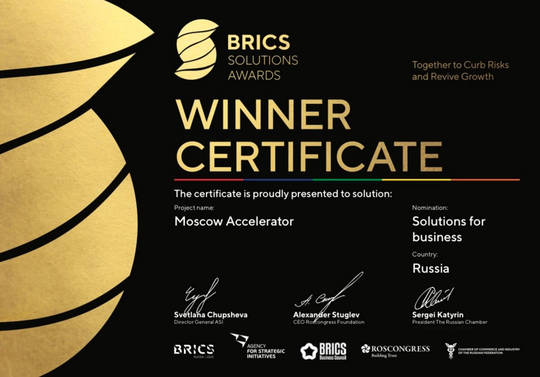 «Московский акселератор» стал лауреатом международного конкурса BRICS Solutions Awards