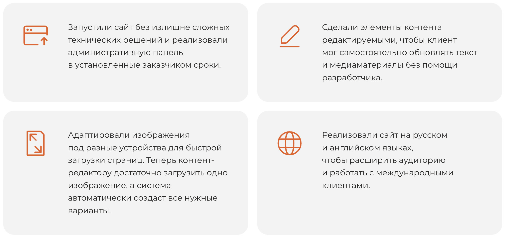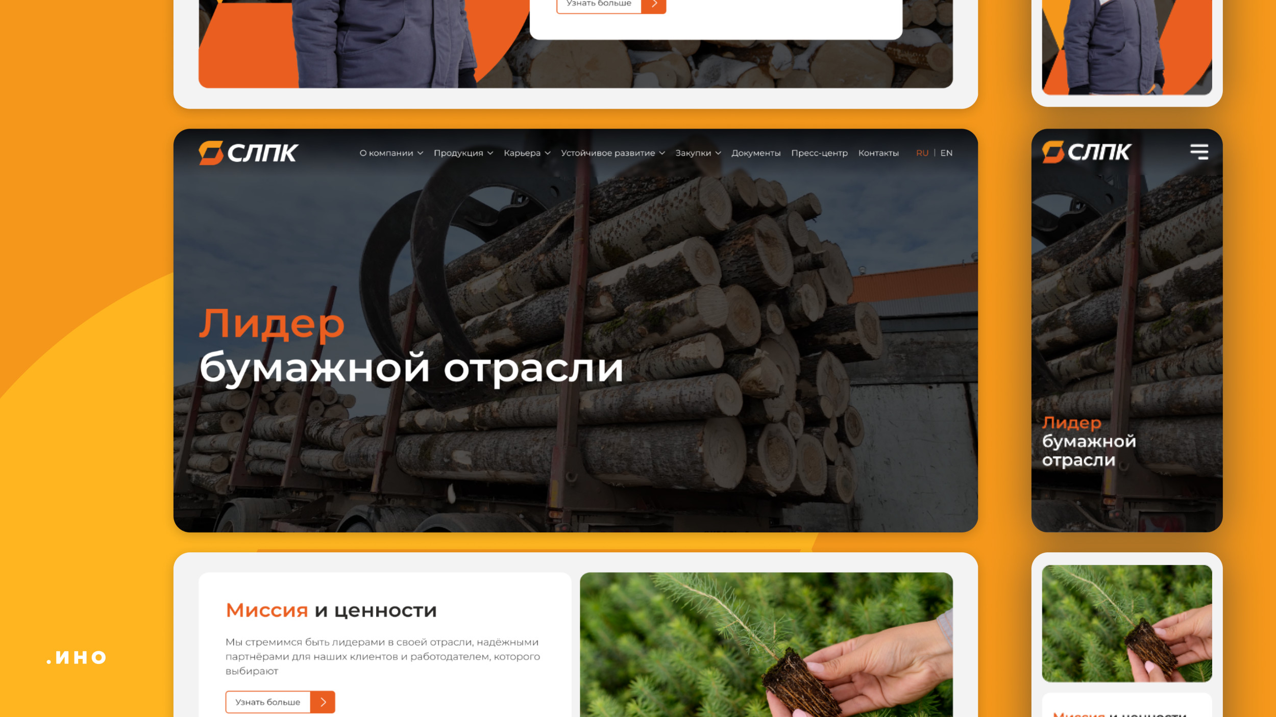 Корпоративный сайт «СЛПК» должен выполнять следующие основные задачи: Команда «Иностудио» предложила решение «под ключ»: мы отвечали за дизайн, разработку, хостинг, администрирование и SEO. На время реализации мы создали временный сайт на Tilda с базовым функционалом, чтобы «СЛПК» оставался доступным для клиентов. Корпоративный сайт заказчику требовался быстро, но его разработка занимает несколько месяцев. Чтобы не оставлять заказчика без полного присутствия в сети, мы создали временный лендинг на Tilda с базовой информацией о компании и контактами для обратной связи. Так «СЛПК» продолжил информировать клиентов и партнёров о своих услугах, пока шла работа над основным сайтом. На брифе с заказчиком определили, что «СЛПК» необходим современный, сдержанный и минималистичный стиль, который поддержит ценности и философию компании. Итоговая концепция интерфейса включает: Для корпоративного сайта в качестве CMS выбрали «1С‑Битрикс: Управление сайтом». Благодаря решению: Интегрировали внешние сервисы на корпоративном сайте: SEO помогает повысить органический трафик и снизить стоимость привлечения клиентов. Поэтому после разработки мы: CMS Bitrix, 1C-Битрикс, PHP 8.2, MySQL, Adobe, Figma, ChatGPT, Tilda. Временный лендинг помог «СЛПК» оставаться доступным для клиентов, партнёров и сотрудников даже во время разработки основного решения. Сейчас корпоративный сайт легко обновляется внутренними силами заказчика, а также: