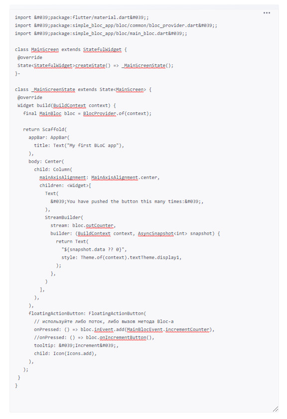 Разделение бизнес-логики и UI во Flutter с помощью BLoC-архитектуры