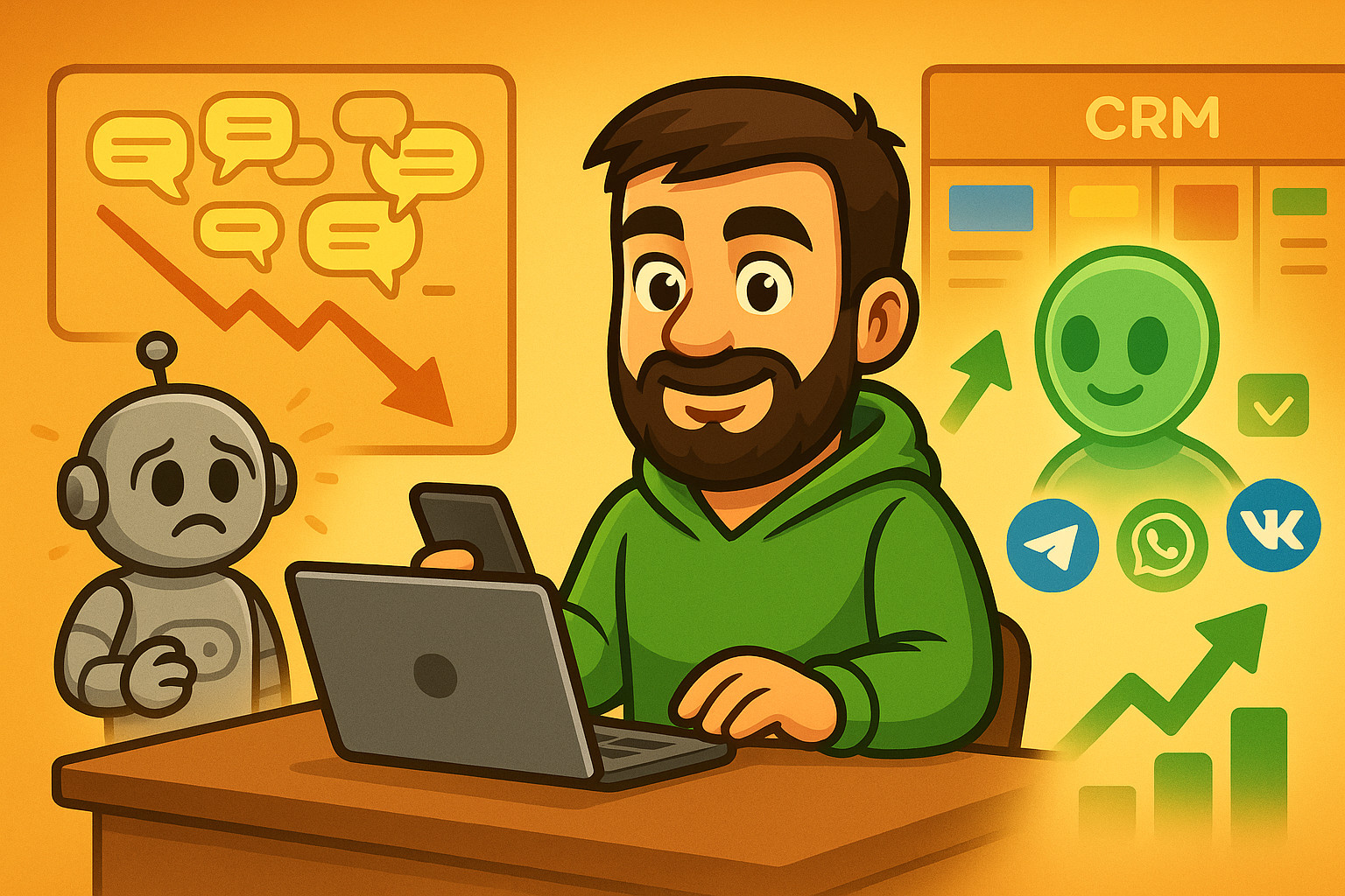 .Реальность у многих другая: — «Простите, я вас не понял» на любой нестандартный вопрос, — клиенты, которые бесятся и бросают диалог, — отдел продаж, который всё равно вручную разгребает хаос.