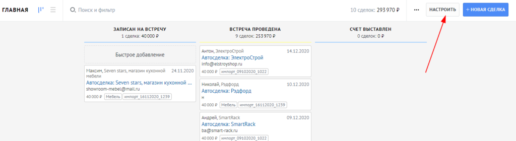 Чтобы настроить систему максимально быстро и точно с учетом особенностей вашего бизнеса, обращайтесь к специалистам компании «ИНТЕГРАЦИЯ». Вам достаточно подать заявку на регистрацию с помощью онлайн-формы на нашем сайте, и мы сделаем все за вас: зарегистрируем личный кабинет, добавим сотрудников и карточки клиентов, а также настроим воронку продаж, которая будет максимально эффективной.