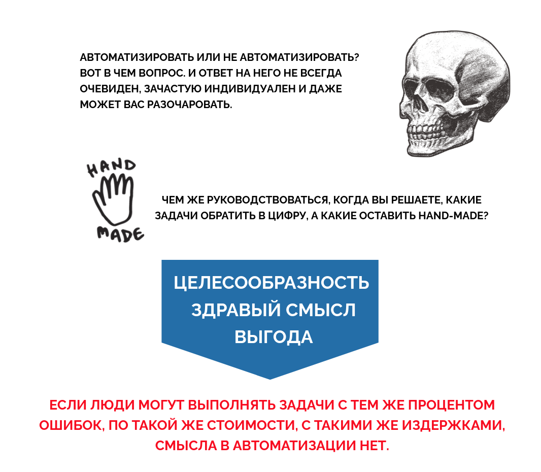 Чем же руководствоваться, когда вы решаете, какие задачи обратить в цифру, а какие оставить hand-made?