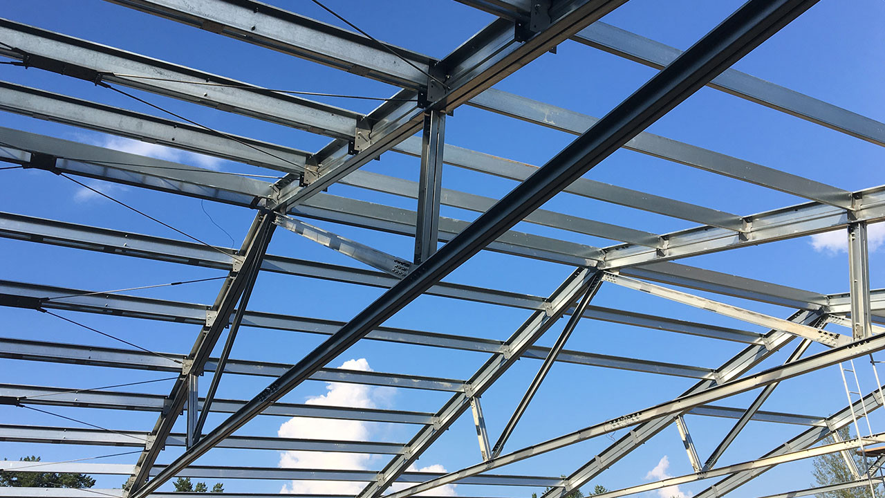 1. Металлические балки: наиболее простое решение, которое чаще применяется для небольших пролетов, в реконструкциях и новом строительстве. В таком ключе служит заменой старым решениям с деревянными конструкциями кровли, но гораздо более долговечен и вариативен, так как легко подобрать сечения, которые позволят сделать пролет более 12 метров, не прибегая к дополнительным подкосам и упорам. Имеется ряд ограничений в месте примыкания к конструкциям стены (условно место мауэрлата), в этом месте необходимо как устройство усиленного пояса с установкой закладных деталей. Также при проверке и расчете конструкций стен нужно учитывать распирающий момент, который возникает в месте крепления балки к стене, эту нагрузку часто минимизируют растяжками по плоскости верха стены. 2. Фермы односкатные, двускатные: количество возможных вариантов ферм практически безгранично, что позволит сконструировать кровлю под любой тип покрытия (зависит больше от уклона) и придать внутреннему пространству кровли любую возможную форму и размер. Очень часто металлические фермы применяются на промышленных складских и крупных торговых объектах в сочетании с бетонными колоннами, что обеспечивает и требования пожарной безопасности, да и в целом является самым выгодным решением для подобных задний и пролетов (примерно с шагом 12*18-24 м). По такому типу построены большинство магазинов Леруа Мерлен, Мегастрой, Икеа в России и во всем мире. Не будем вдаваться в конструкторские подробности, но фермы хорошо работают в сочетании с одиночными колоннами-стойками, которые требуют распорок между собой и создания «жесткого диска в покрытии». 3. Стержневые пространственные конструкции для кровли, как пример, конструкции типа Кисловодск и похожие, раньше очень часто применялись в производственных и крупных торговых зданиях, по такому принципу построено большинство центральных рынков в крупных городах России. Имеют множество преимуществ как и перед фермами, так и перед балками перекрытия, особенно больший пролет, меньший шаг сетки колонн здания, как правило, меньший удельный вес в пересчете на квадратный метр. Но архитектурно и технологично применимы не ко всем типам зданий, и в настоящее время не так много производителей, которые готовы предложить подобные кровельные металлоконструкции. 4. Конструкции ЛСТК: могут по форме и назначению заменять первые два вида, служа им более легкой и выгодной альтернативой (из профилей ЛСТК может быть изготовлена и ферма различной формы и балка многих сечений). Но важнее то, что особенно при реконструкции и надстраивании кровли решение из ЛСТК-конструкций позволяет разгрузить несущие стены и каркас, которые, как правило, не были рассчитаны на надстройку еще одного этажа и, соответственно, сделать такую постройку возможной. Конечно, в любом типе размере и назначении здания ЛСТК позволит облегчить каркас кровли, тем самым снизив нагрузку на конструкции и фундамент, но не стоит забывать о требованиях пожарной безопасности, с учетом которых технология ЛСТК иногда неприменима. 1. Горячекатаный и гнутый швеллер: наиболее часто применяемое решение ввиду простоты, соответствия жестким пожарным требованиям и долговечности здания. Причем, применения именно гнутого швеллера по сравнению с горячекатаным позволяет в целом снизить металло