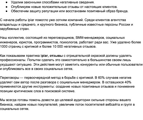 Ipiar: отзывы и репутация в сети под надежным контролемСпециализация агентства ipiar — отзывы, работа с ними и управление репутацией компаний во всемирной паутине.