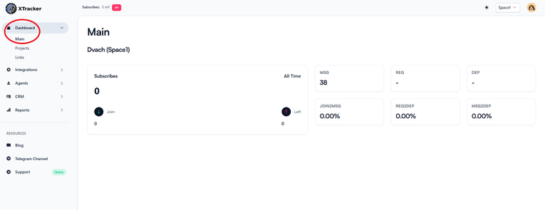 1. Раздел Dashboard, подраздел Main — тут можно посмотреть статистику за всё время по всему проекту: