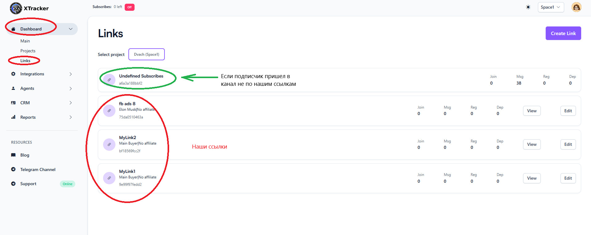2. Links: статистические данные по ссылкам. Undefined Subscribes: если подписчик пришел в канал не по