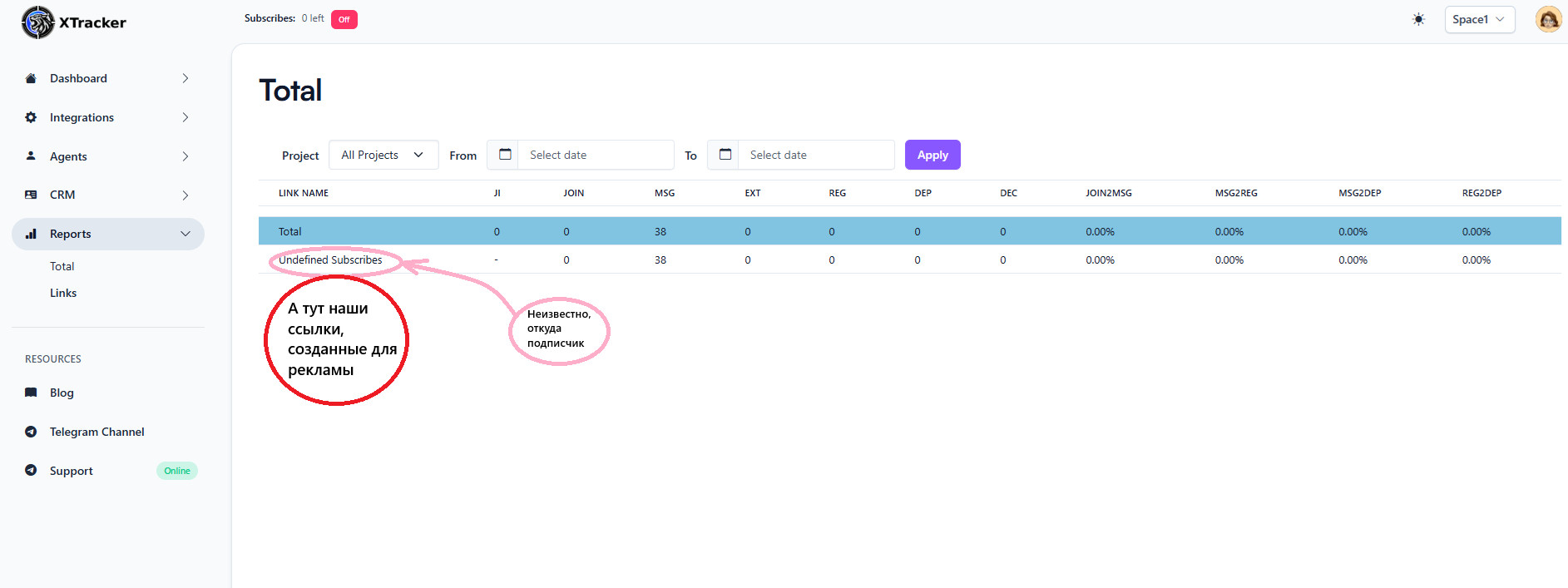 - Undefined Subscribes: если подписчик пришел в канал не по нашим ссылкам, то этот подписчик учитывается тут (Conversions API по этим подписчикам не работает);