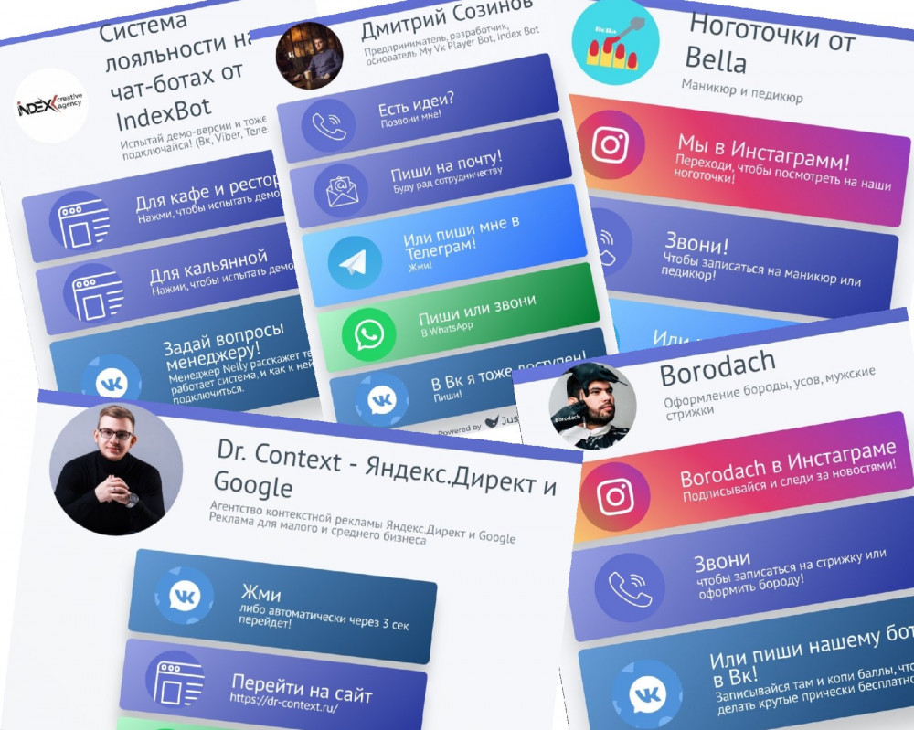 Наибольшей популярностью микроленндинги пользуются при рекламе в социальных сетях и мессенджерах, например, в Инстаграме: лиды собираются из одного мессенджера в другие (Вк, Вайбер, Воцап... — то есть, люди имеют возможность выбрать).