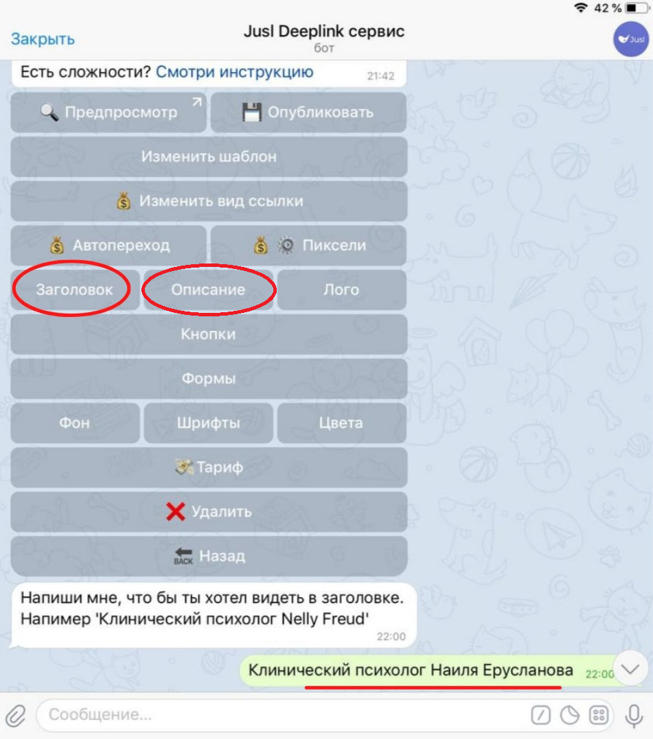 Сейчас на рынке становятся все более популярными именно электронные визитки: в них можно емко и лаконично рассказать о себе и своей деятельности, указать все социальные сети (клиент сам выберет, в какой социальной сети ему удобнее наблюдать за вами). В цифровой визитке указываются номера и другие контакты, и можно предоставить форму обратной связи (то есть человек там сможет оставить заявку на услугу), и при всем этом визитка автоматически сохраняется у клиента в телефоне. К тому же, такими визитками можно даже делиться, распечатав бумажные варианты с qr-кодом, отсканировав который клиент попадет на цифровую страницу. Удобна электронная визитка еще и тем, что на нее можно выставить любые метрики для веб-аналитки: Фейсбук Пиксель, Яндекс метрику или Пиксель Вк, тогда как такие метрики на свой сайт выставить можно лишь после доработки. На цифровую визитку можно лить трафик ото всюду — из Фейсбука, из Инстаграм, через РСЯ... Конечно, самый идеальный вариант — это иметь и визитку, и сайт с личным блогом, но, если стоит выбор, то лучше сделать выбор в пользу цифровой визитки. Моя электронная визитка, к примеру, сделана через бота Jusl — все вышеописанные мной функции можно задействовать тут и в своей визитке, так же можно выработать индивидуальный дизайн для нее. Далее я расскажу, как я сделала свою электронную визитку. 1. Переходим в JuslBot и нажимаем на «Добавить ссылку», далее — на «Добавить визитку» . Потом отправляем наш первый наш контакт — это может быть ссылка на источник или номер телефона. Я отправлю номер телефона. 2. Чтобы редактировать и добавлять кнопки-ссылки и на другую контактную информацию в цифровую визитку, а так же включить функцию vCard и Qr-vCard (это штуки, которые автоматически сохранят ваши контакты на телефон клиенту), нажимаем на «Кнопки». Соответственно, чтобы добавить vCard , я нажму на «Добавить vCard» , а чтобы добавить кнопки-ссылки на другие источники я воспользуюсь функцией «Добавить кнопку». Я отправлю ссылки на свою страницу в Вк, Ютуб-канал и на свой блог. 3. Чтобы отредактировать название и описание каждой добавленной кнопки-ссылки, нужно в том же меню «Кнопки» нажать на добавленный контакт и использовать функции «Изменить название» и «Изменить описание». 1. Добавим заголовок (кому принадлежит визитка/название компании). Нажимаем «Изменить заголовок» и вводим наименование. 2. Добавим минимальную информацию о владельце. Нажмем «Описание». Пишем кратко о себе или о своей деятельности. 3. Добавим логотип (или персональное фото). Для этого я нажму «Лого» и отправлю свою фотографию. 4.Чтобы сделать саму ссылку красивой, используем кнопку «Изменить вид ссылки». С помощью формы обратной связи, любой человек, оказавшийся на странице вашей визитки, сможет отправить вам заявку на услугу, а вы автоматически получите её прямо в бота. Для того чтобы добавить форму заявки, нажмите на кнопку «Формы» и выберите удобный формат. Я выберу для своей визитки форму, где человеку необходимо будет оставить свой номер телефона, чтобы я потом смогла ему позвонить. В целом, визитка готова. Чтобы проверить, не сделали ли мы ошибок, нажмем на «Предпросмотр» — проверим. Но даже после публикации, мы всегда сможем все поменять и добавить другие функции. После проверки, если все в порядке, нажмем кнопку «Опубликовать» . Вот такая у меня получилась цифрова