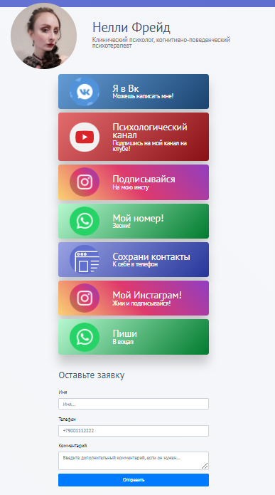 Электронная визитка — это лендинг с минимум контактной информацией с доступностью в один клик, которая автоматически сохранится в телефоне потенциального клиента.