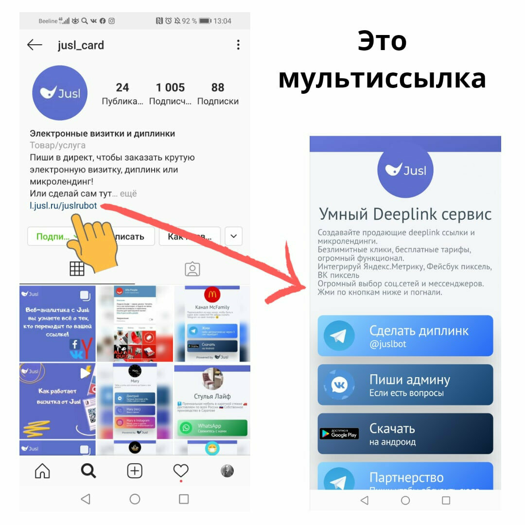 Электронная визитка — это веб-страница с контактными данными и всеми социальными сетями владельца, оптимизированная для показа в смартфоне.