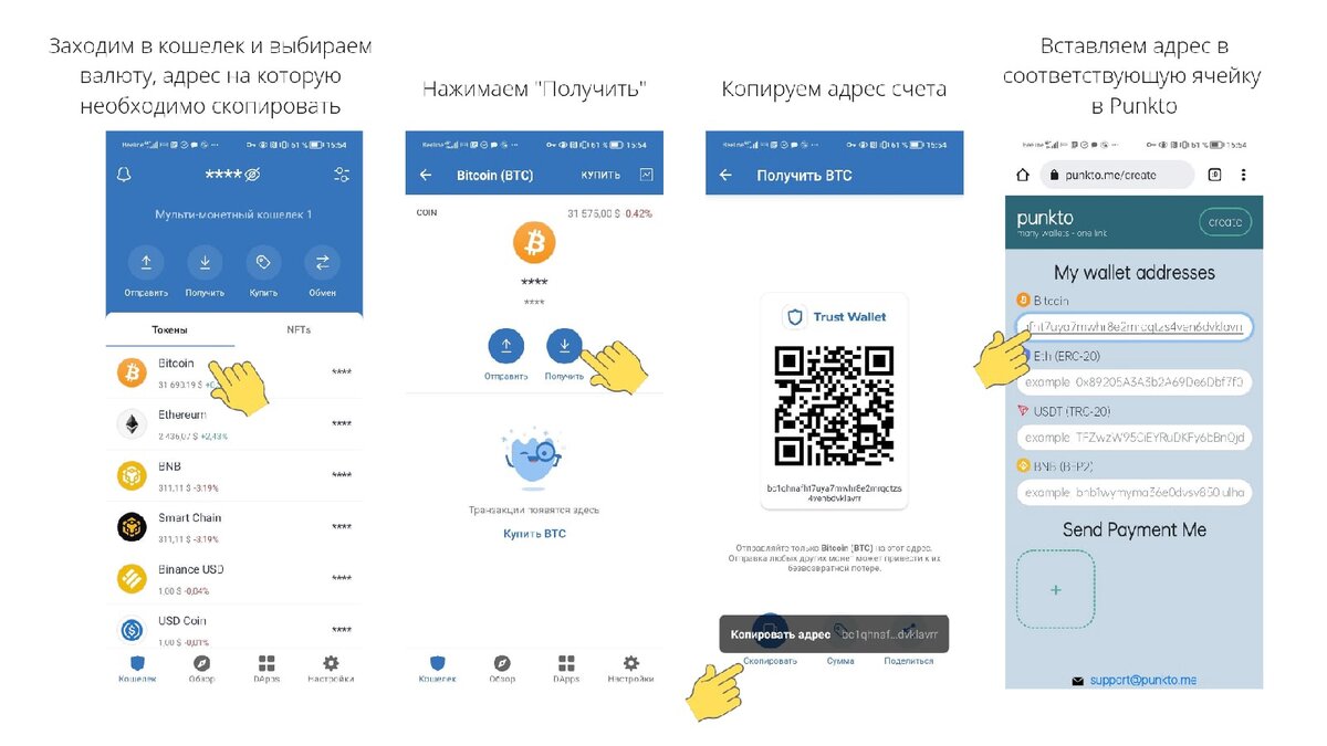 Как перевести криптовалюту с кошелька на кошелек через «Punkto»