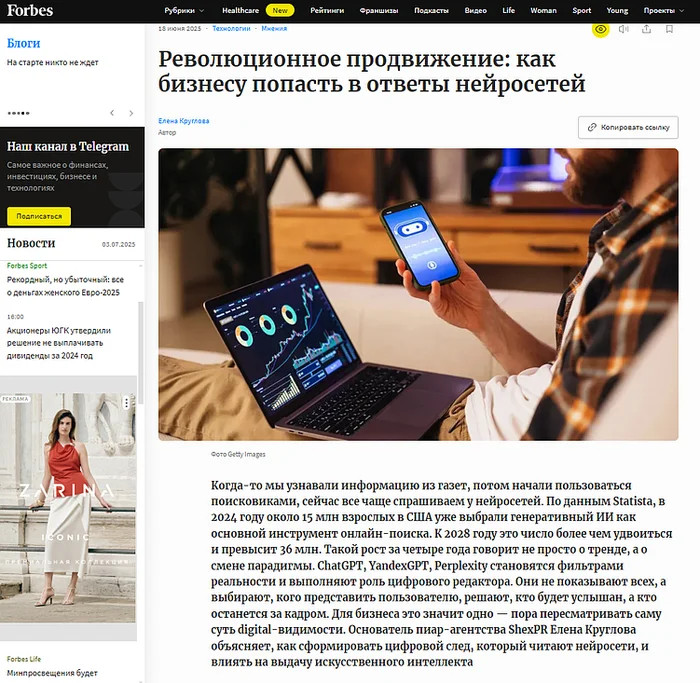 У нас он выглядит так: У каждой статьи есть автор, и редакции запрашивают БИО — имя и должность автора, фото, иногда ссылку на компанию, которую он представляет. Эта информация показывается вместе с текстом статьи. Если вам есть что сказать и редакциям нравятся ваши материалы — можно стать постоянным автором и вести колонку. Чем больше упоминаний — тем быстрее растет ваш личный бренд. Этим вы улучшите SEO-показатели сайта. К сожалению, крупные федеральные СМИ не всегда ставят ссылки, но иногда сам факт публикации в условном Forbes намного важнее. А с более мелкими СМИ мы умеем договариваться 🙂 Идеальная схема: статью читают люди, которые могут стать вашими потенциальными клиентами, проходят по ссылке, изучают ваш сайт и оставляют заявки. Как правило, сотрудничество с изданиями у нас в агентстве строится так. Вместе с клиентом мы решаем, что именно нужно пропиарить: например, компанию в целом или определенные услуги, и прорабатываем темы гостевых статей. Например, если наш клиент занимается разработкой сайтов — подойдут информационные статьи по веб-разработке, веб-дизайну, программированию, интернет-маркетингу. Если делает сервисы для ecommerce — пишем обо всем, что может быть интересно владельцам интернет-магазинов, поставщикам, производителям товаров. Лайфхак: если вы нацелены на федеральные СМИ, тему нужно выбирать вдумчиво и тщательно. Редакциям не нужны рерайты или простые материалы, информацию которых можно легко нагуглить. Им нужен эксклюзив: мнения и прогнозы эксперта, конкретные кейсы, мясо и жирок. Ни один редактор крупного СМИ не поведется на словесную воду и красивые слова. Это всегда нужно учитывать. Например, специалиста по авторскому праву мы попросили привести примеры 3-х громких судебных дел 2025 года со своими комментариями. А эксперта бьюти-индустрии — рассказать об уникальной технике фейсбилдинга: Вариантов три. Это Forbes, Ведомости, РБК, Российская газета, Hello, Ok! и т. п. Над публикациями в этих изданиях мы работаем совместно с пиарщиком Еленой Кругловой. Пиар-специалист работает над тем, чтобы эксперт попал в СМИ через редакционный отдел, не на коммерческой основе. В этом случае вы попадете в СМИ без пометки о рекламе и бесплатно — оплачивается только гонорар пиарщика. Мы как контент-агентство обеспечиваем копирайтинг — качественные статьи, которые принимают ведущие СМИ. Бизнес-Секреты от Т-банка, Ягла, Seonews, профильные медиа, региональные СМИ и др. Туда попасть легче, можно обойтись без пиарщика — мы справляемся сами. Обеспечиваем под ключ публикацию, все согласования с редакциями берем на себя. Это самый простой и бюджетный вариант опубликоваться на трастовой площадке и получить трафик на сайт. Простой — потому что порог входа низкий, с редакцией согласовывать не надо, создавай профиль и пиши хоть 5 статей в день. Бюджетный — потому что статьи туда принимают даже неуникальные, можно взять свой удачный материал и просто разместить его, не платя за копирайтинг. От этого этапа зависит очень многое. Чем больше СМИ вы заинтересуете, тем больше людей узнает о вашем бизнесе. Если вы сотрудничаете со СМИ через агентство, письма пишут они (то есть мы!) сами и вообще весь менеджмент берут на себя. Если нет — увы, попасть самостоятельно в федеральные СМИ на некоммерческой основе очень трудно. Во-первых, вы не знаете личные конта