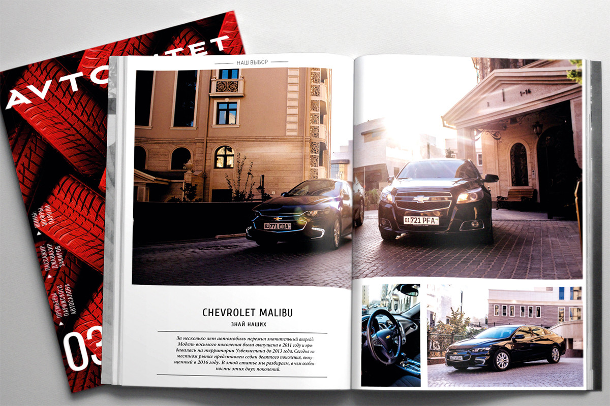 Одна из наших работ — перезапуск и продвижение узбекистанского автомобильного журнала Avtoritet. Это издание выходило тиражом около 3000 экземпляров, его выпускала местная группа компаний Orient. Журнал можно было найти в популярных заведениях Ташкента.
