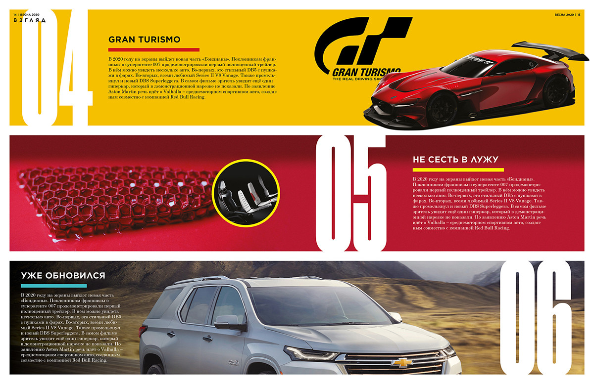 Перед нами стояла задача создать заново визуальный образ издания, изменить наполнение и сформировать подачу материала. Перед каждым новым выпуском мы проводили анализ аудитории 一 смотрели, как она реагирует на новый контент. Источником вдохновения послужил «TopGear Великобритания».