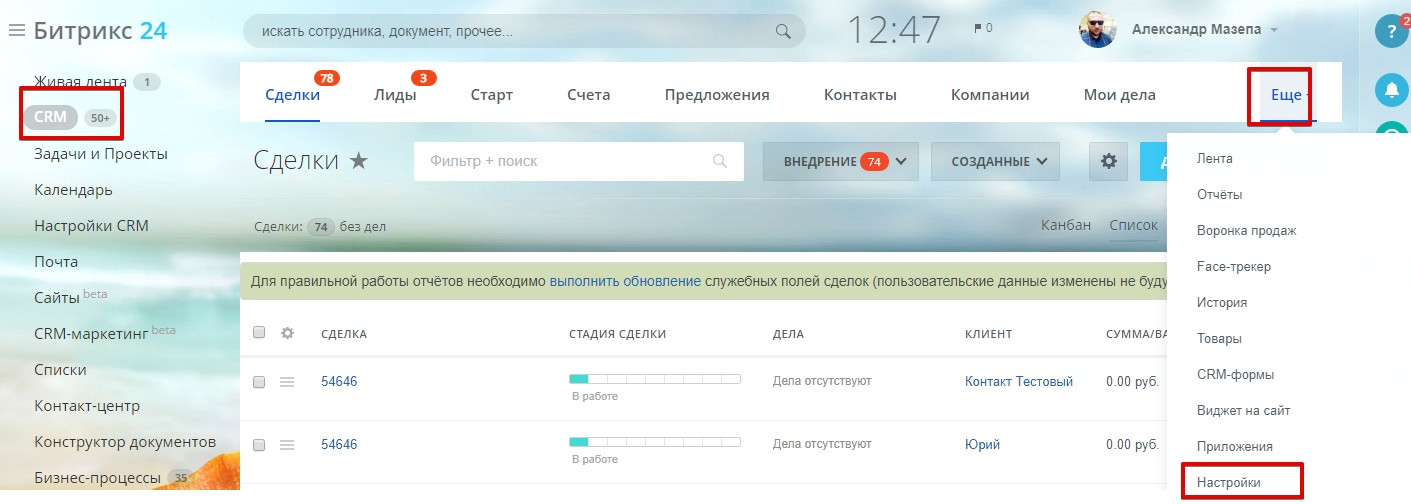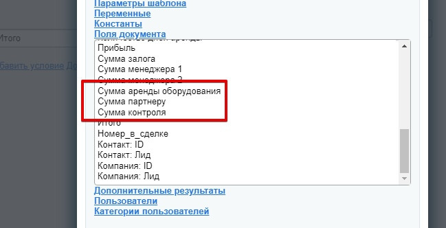 Например, есть задача: при заполнении ответственным в сделке полей расходов: «сумма аренды оборудования», «сумма партнеру», «сумма контроля» автоматически рассчитывалась сумма «Итого»