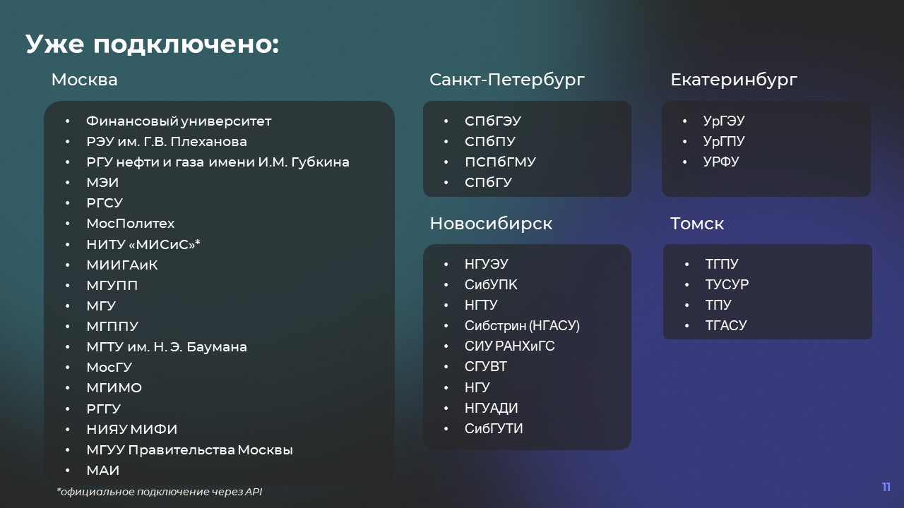 Мы создали решение, которое позволит минимизировать расходы и взаимодействовать со студентами 100+ вузов и колледжей в одном месте. Это система «Кампус» — приложение, к которому подключены и студенты, и университеты, и компании-работодатели. Оно знает о студентах всё: город, вуз, факультет, курс, изучаемые дисциплины, преподавателей, интересы и предпочтения по работе.